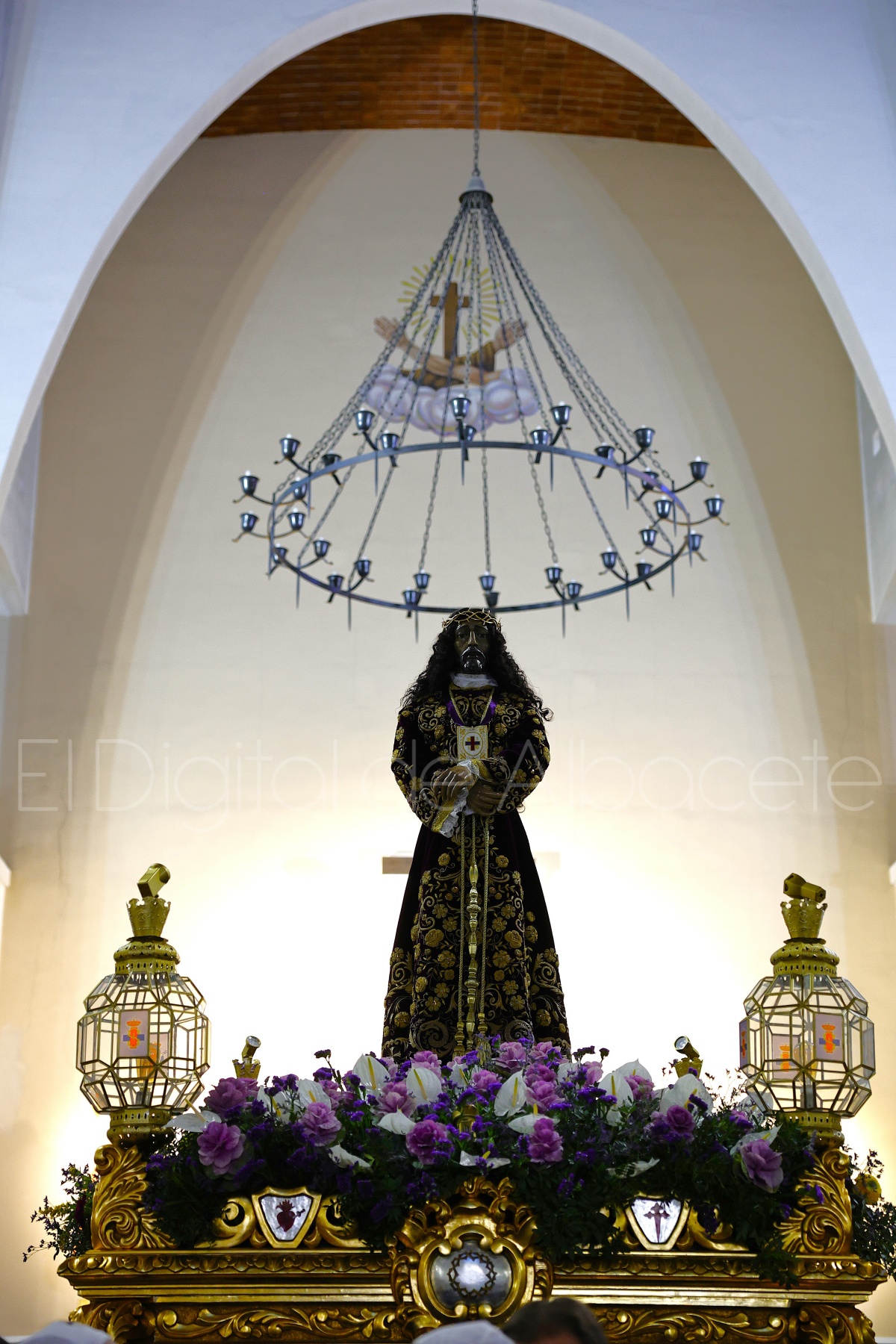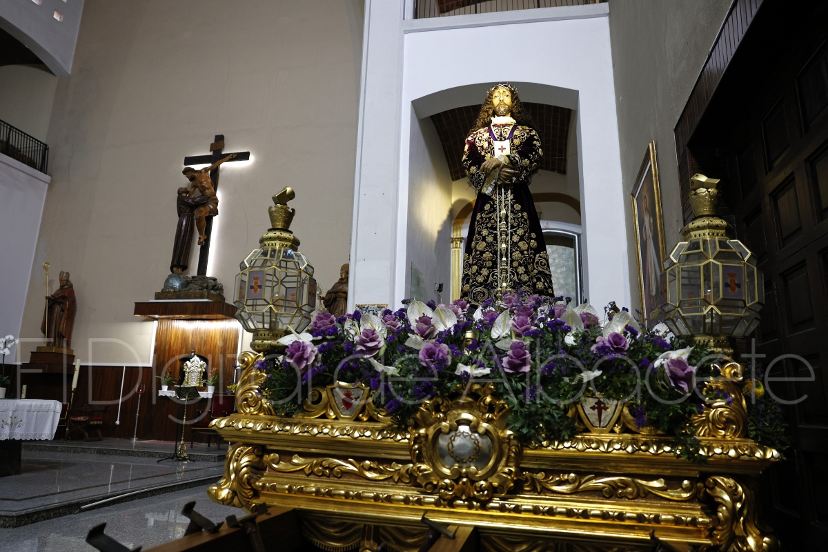 Tras la procesión que recorrería la calles de la ciudad, la Real e Ilustre Esclavitud del Cristo de Medinaceli realizaba una imposición de medallas de la cofradía y se celebraba una Eucaristía en la Parroquia de Franciscanos presidida por el obispo de la Diócesis de Albacete, Ángel Román.
