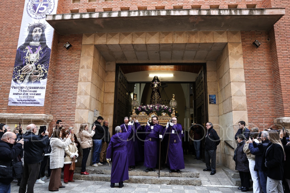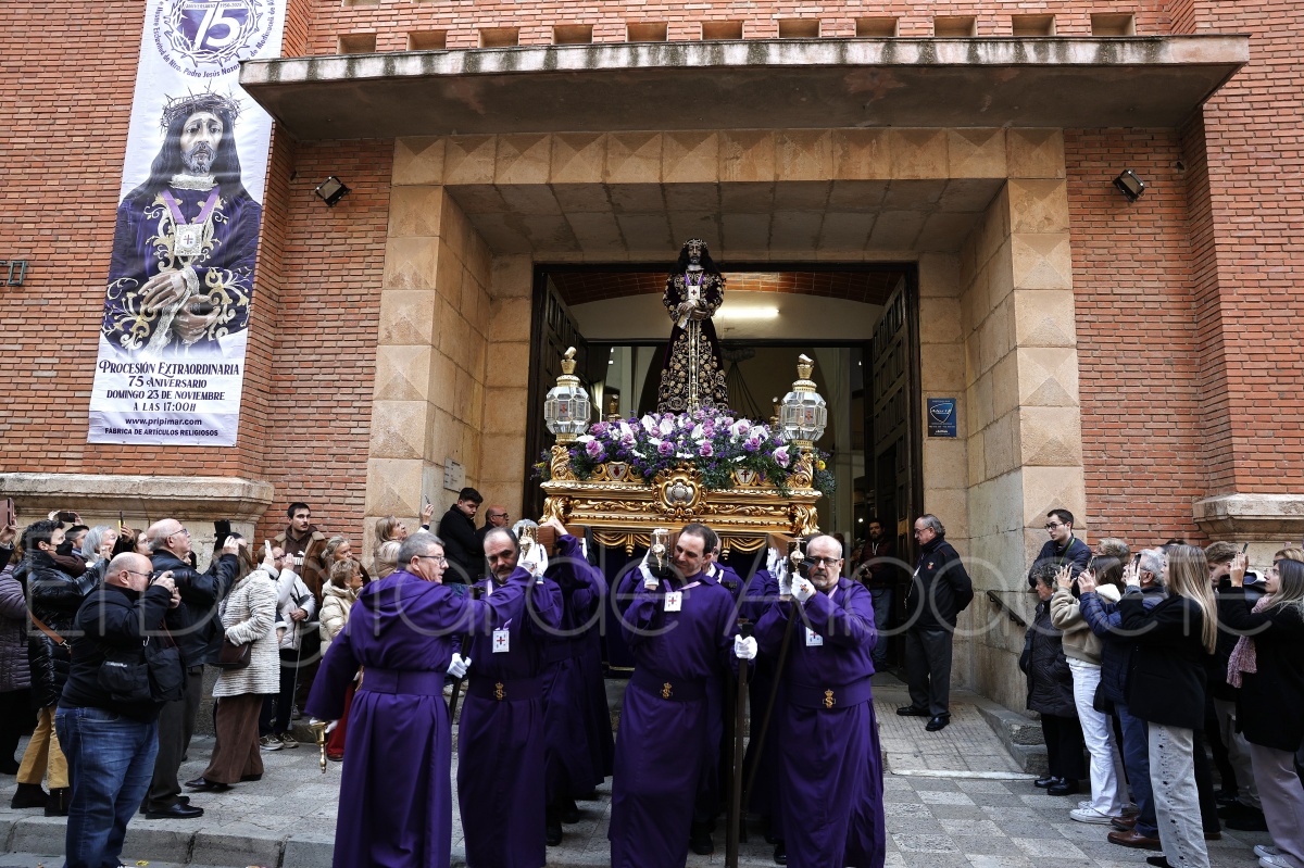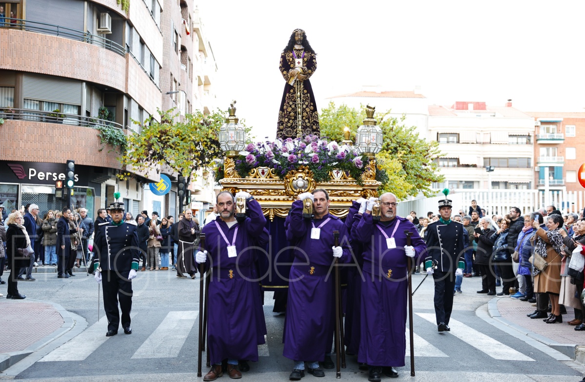 Arropado por el calor y el cariño de multitud de fieles y devotos recorría las calles de Albacete el Cristo de Medinaceli en la fría tarde de este domingo, 23 de noviembre. Una Procesión Extraordinaria que era el broche de oro a la conmemoración del 75 aniversario de la Real e Ilustre Esclavitud de Nuestro Padre Jesús Nazareno de Medinaceli en Albacete.
