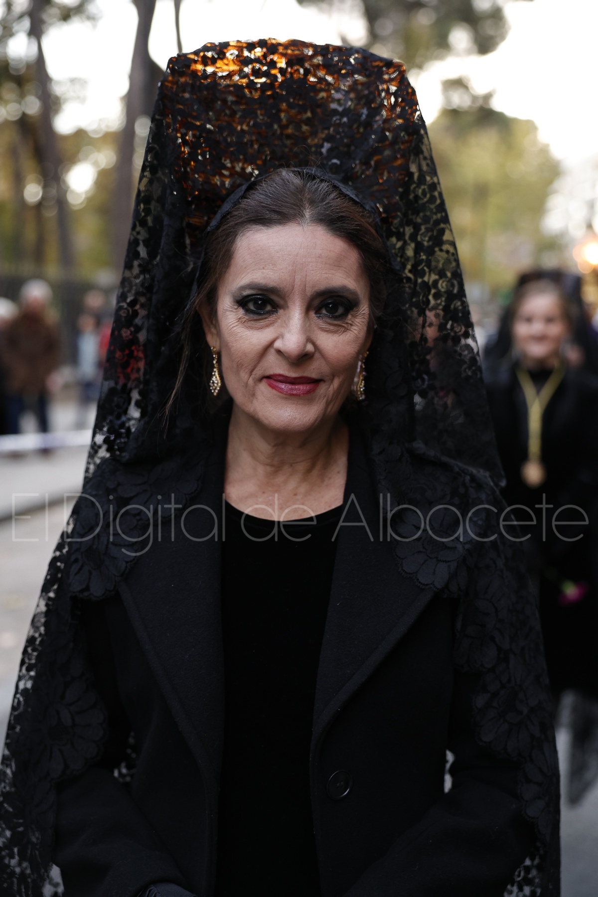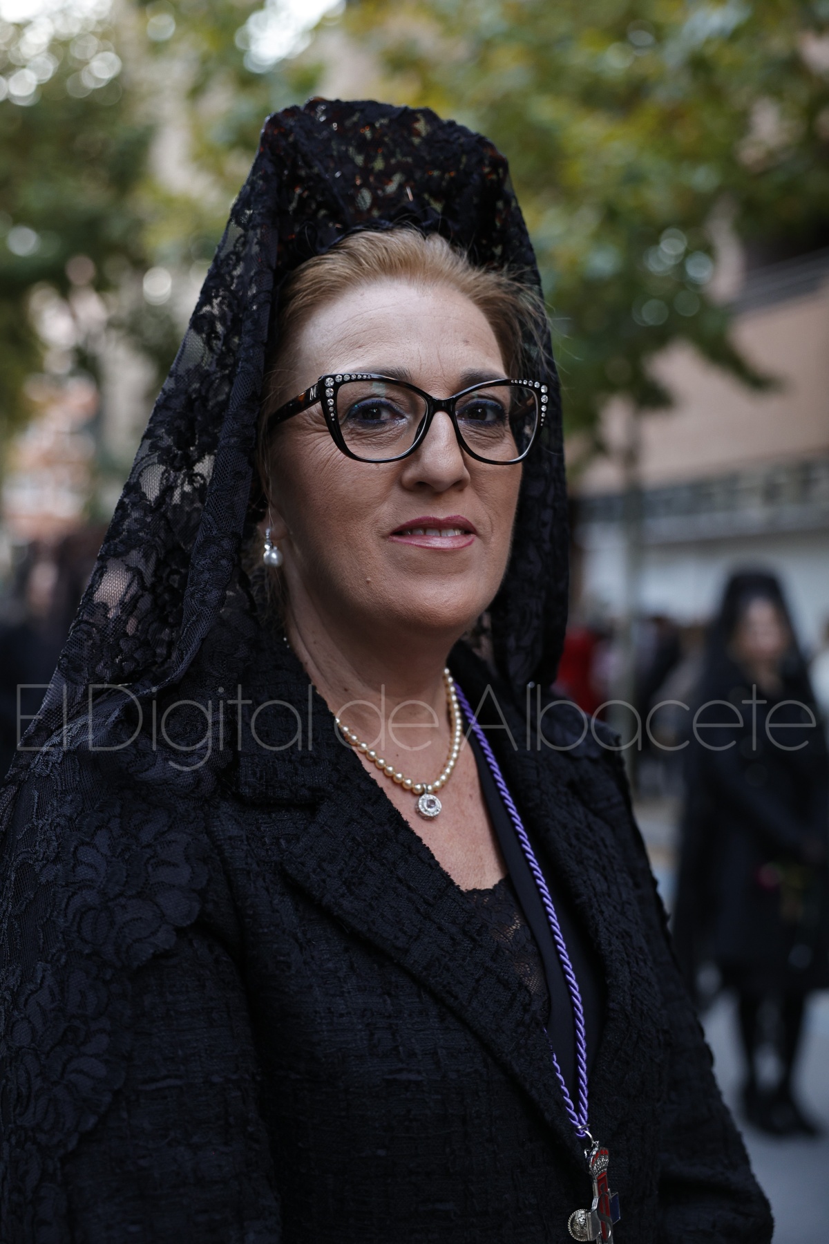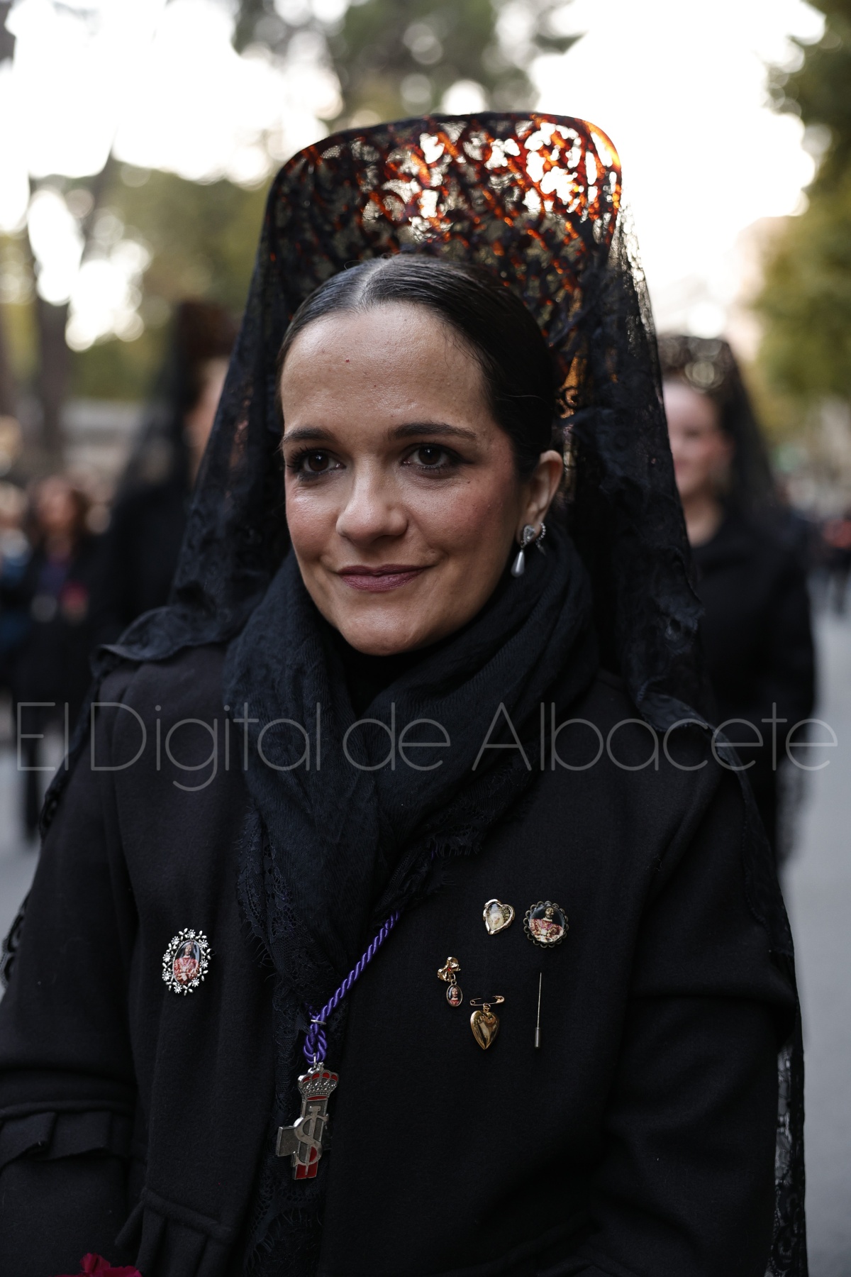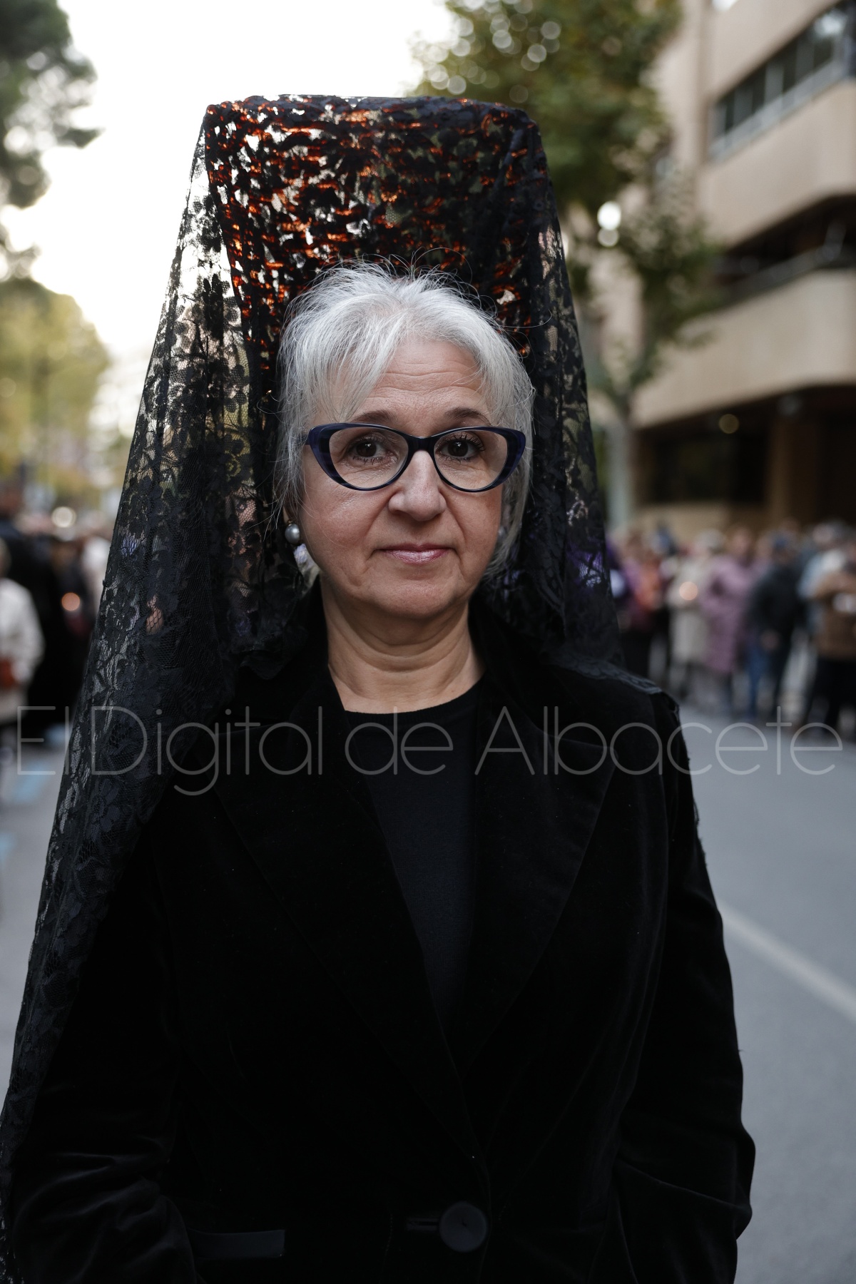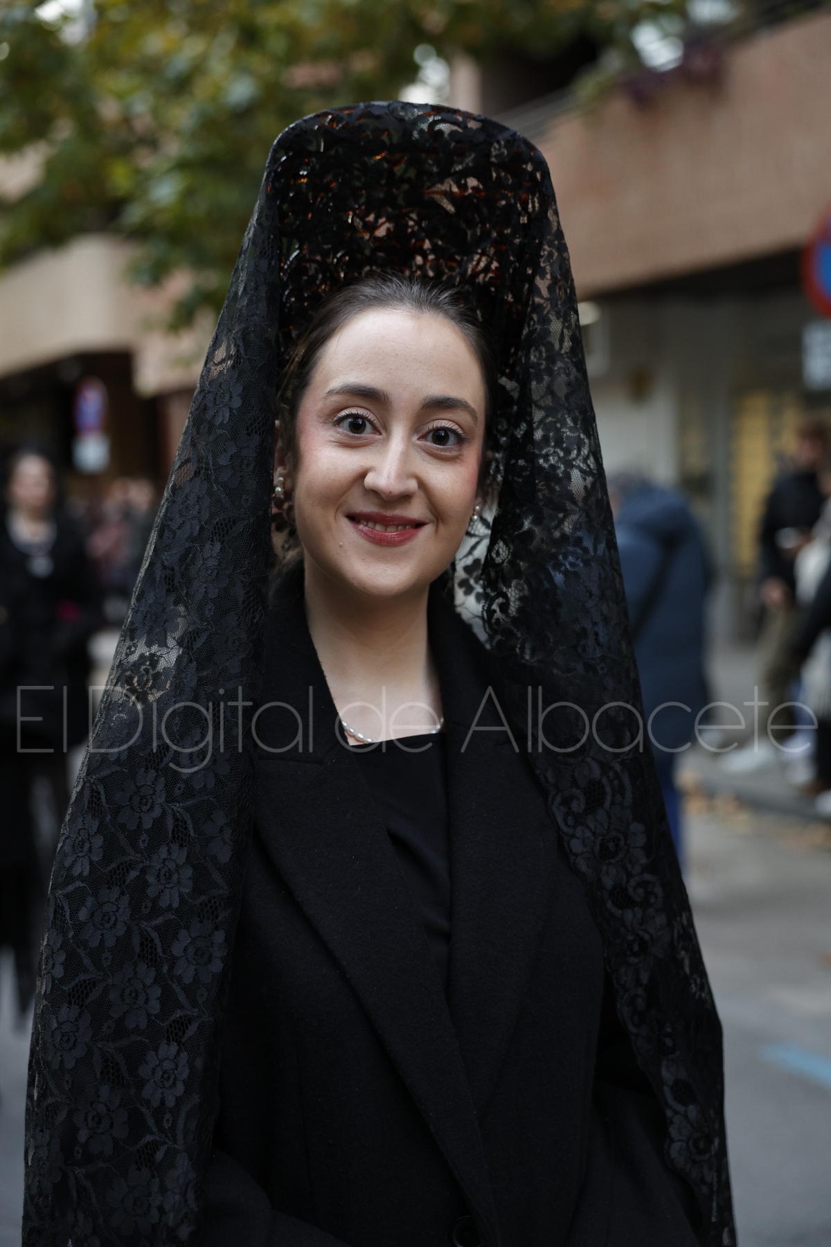 Pero además de numerosos fieles y devotos, acompañaban en su caminar por la ciudad al Cristo de Medinaceli en esta Procesión Extraordinaria, mujeres ataviadas con la tradicional mantilla española. Un detalle que contribuía a realzar la solemnidad de este acto histórico que vivía en la tarde de este domingo, 23 de noviembre, la ciudad de Albacete con motivo del 75 aniversario de la Real e Ilustre Esclavitud de Nuestro Padre Jesús Nazareno de Medinaceli.