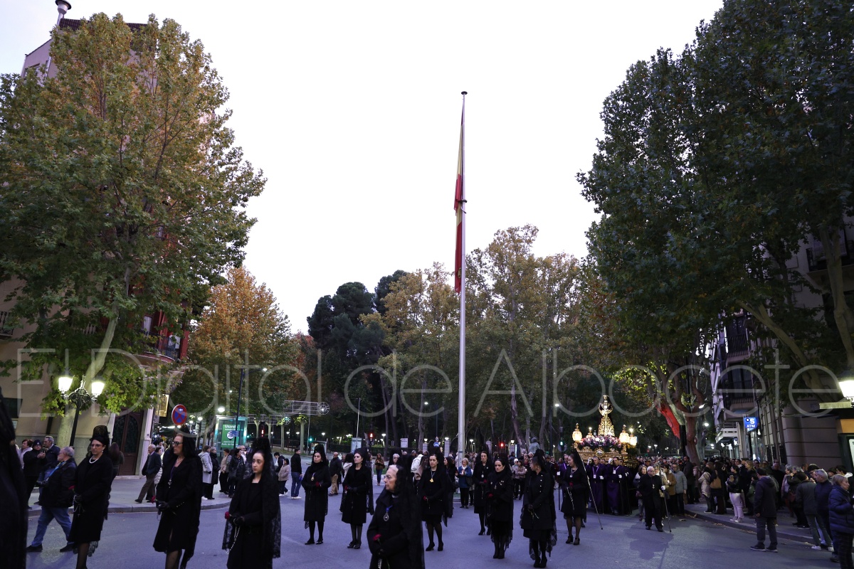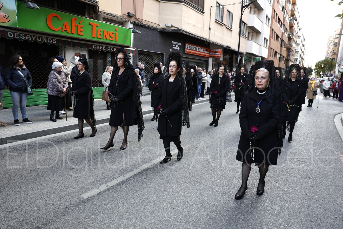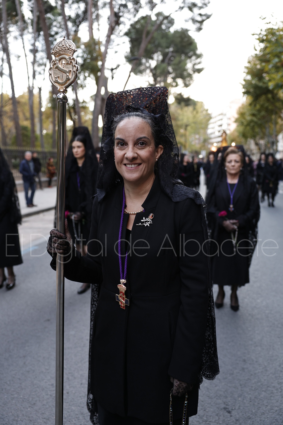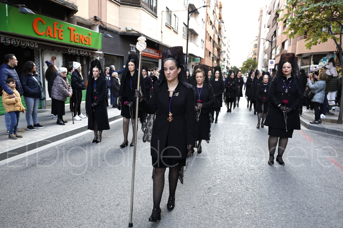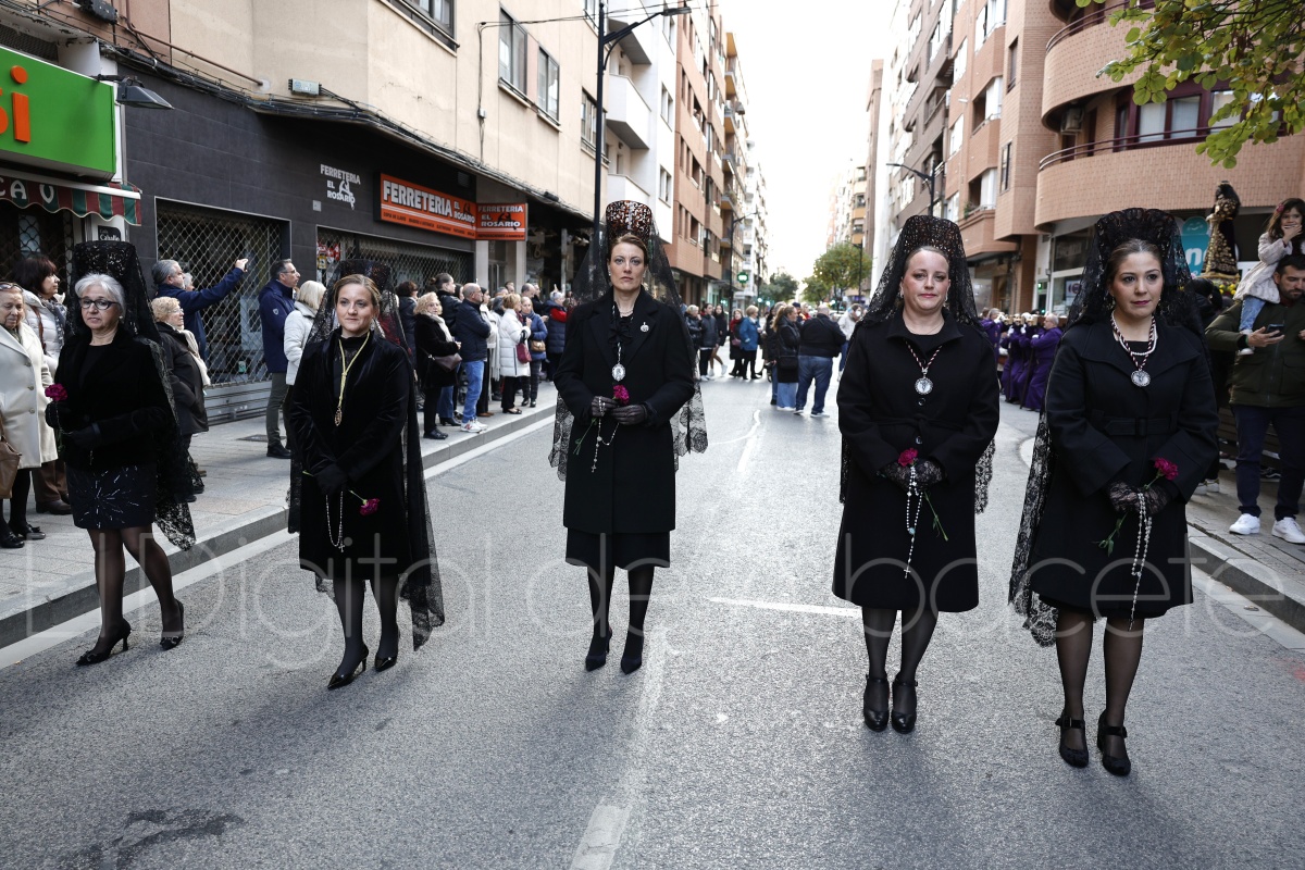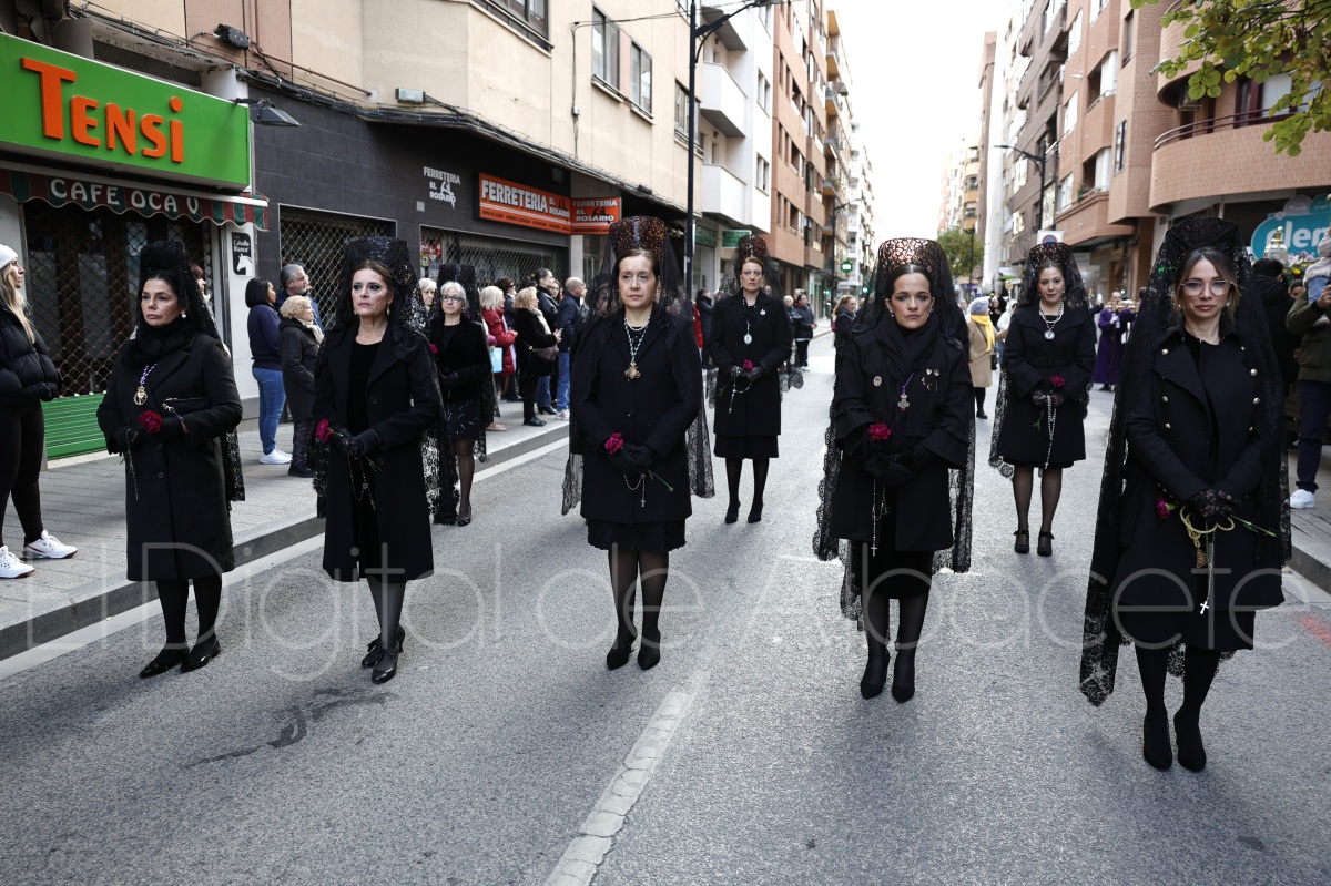 Pero además de numerosos fieles y devotos, acompañaban en su caminar por la ciudad al Cristo de Medinaceli en esta Procesión Extraordinaria, mujeres ataviadas con la tradicional mantilla española. Un detalle que contribuía a realzar la solemnidad de este acto histórico que vivía en la tarde de este domingo, 23 de noviembre, la ciudad de Albacete con motivo del 75 aniversario de la Real e Ilustre Esclavitud de Nuestro Padre Jesús Nazareno de Medinaceli.