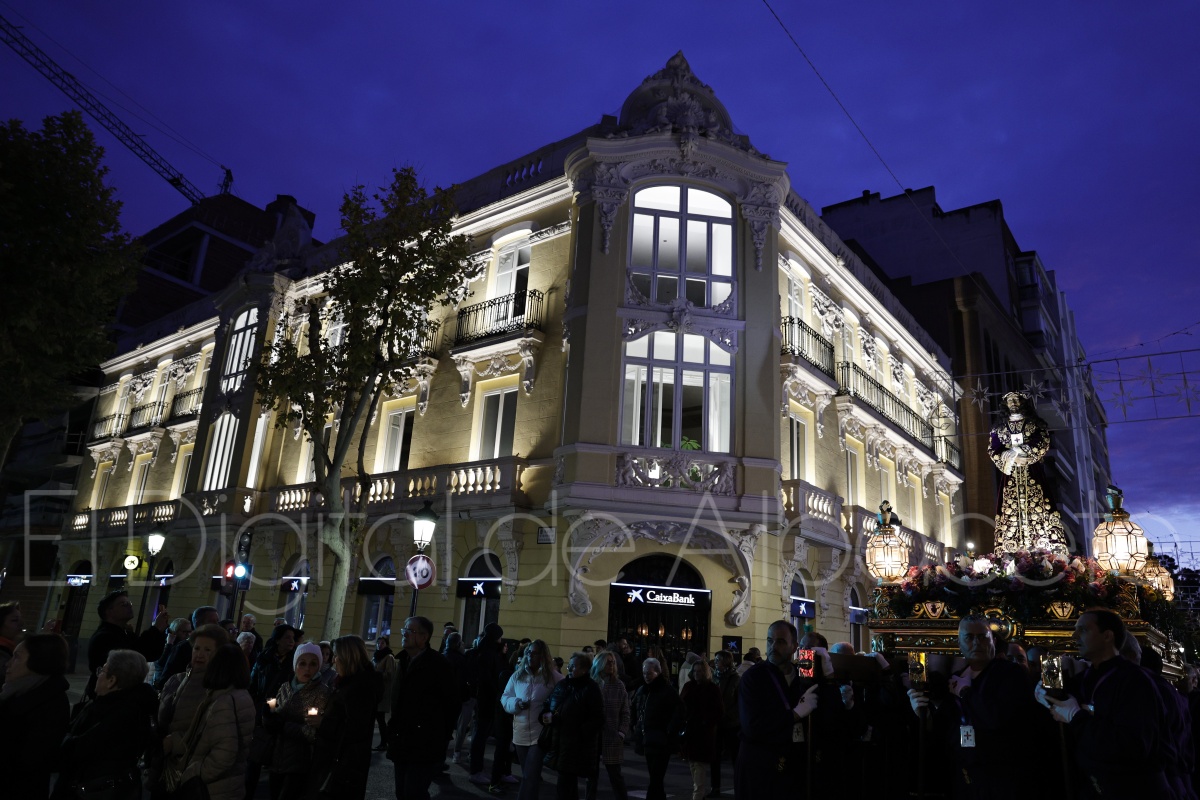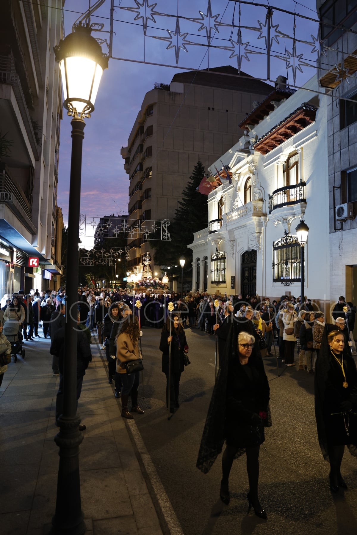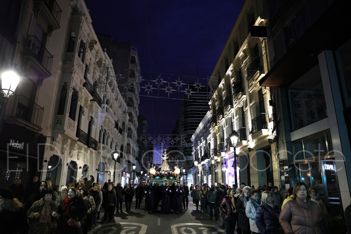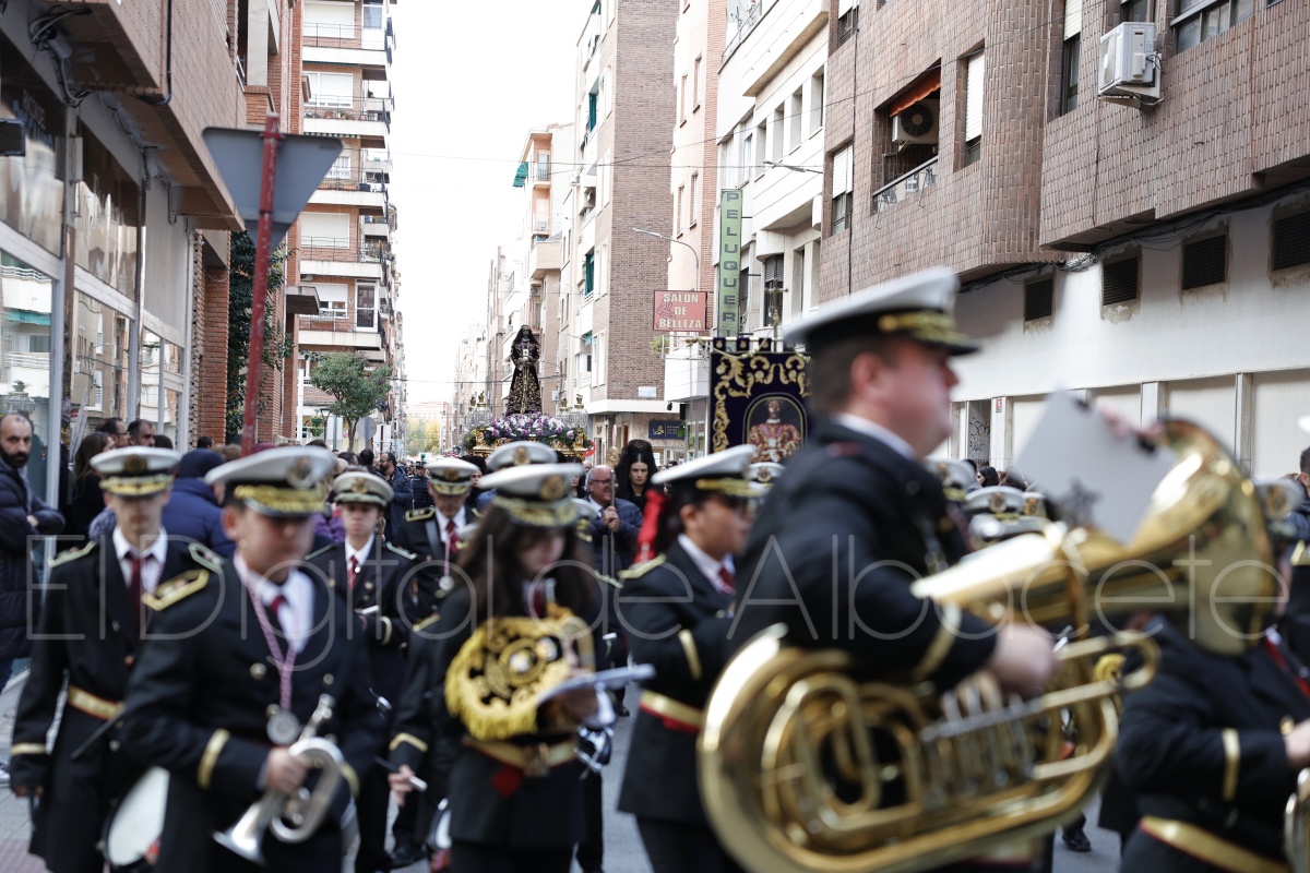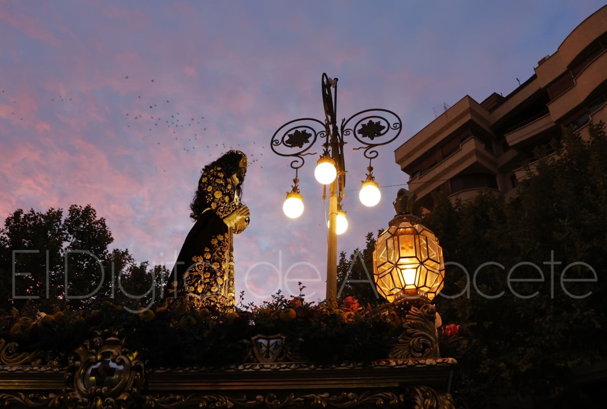 Pero además de numerosos fieles y devotos, acompañaban en su caminar por la ciudad al Cristo de Medinaceli en esta Procesión Extraordinaria, mujeres ataviadas con la tradicional mantilla española. Un detalle que contribuía a realzar la solemnidad de este acto histórico que vivía en la tarde de este domingo, 23 de noviembre, la ciudad de Albacete con motivo del 75 aniversario de la Real e Ilustre Esclavitud de Nuestro Padre Jesús Nazareno de Medinaceli.