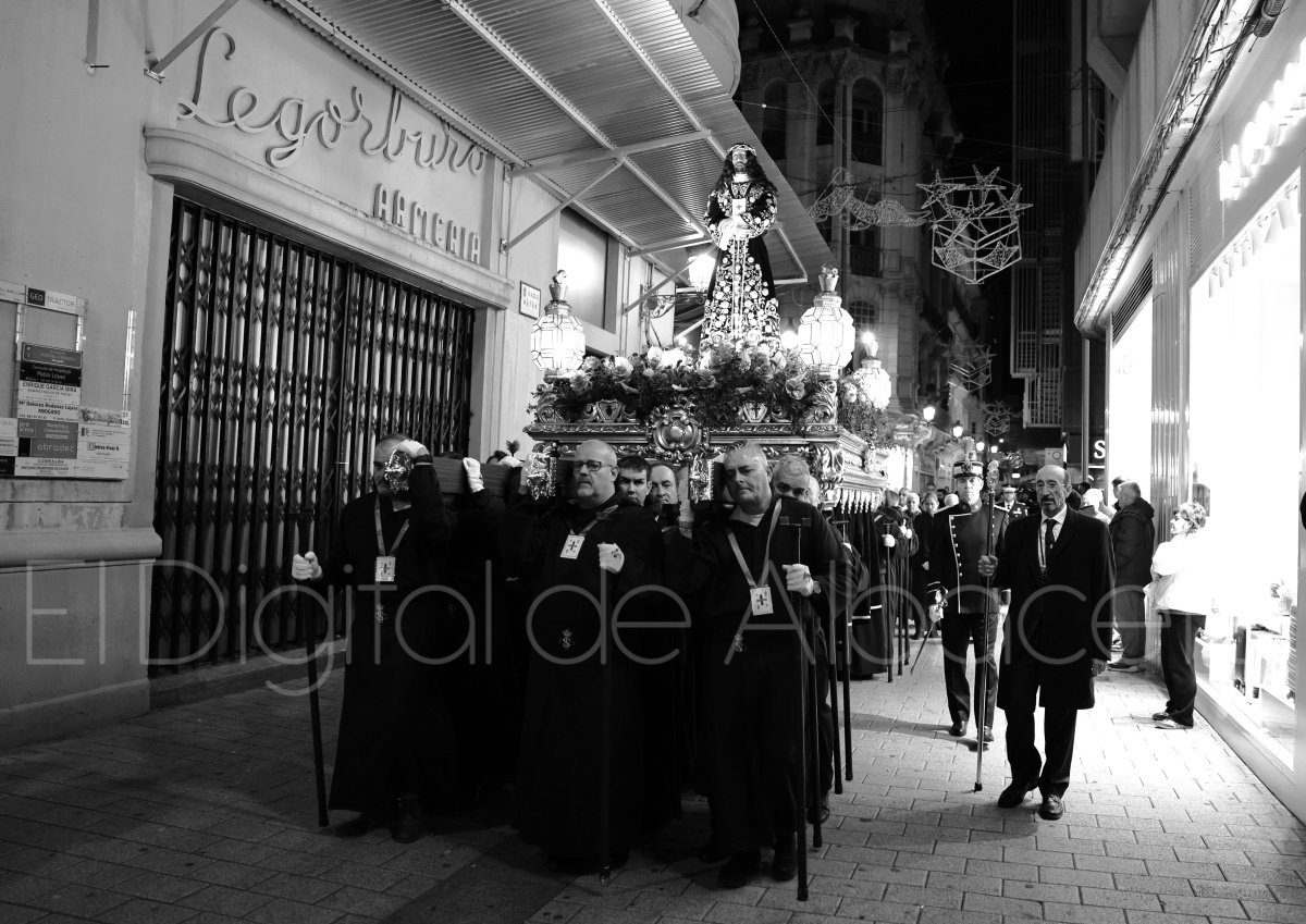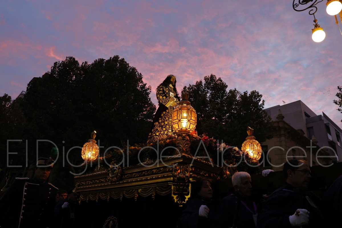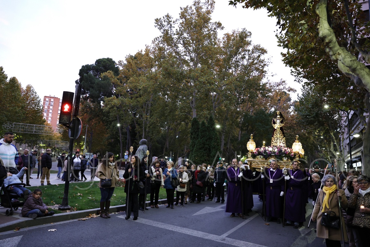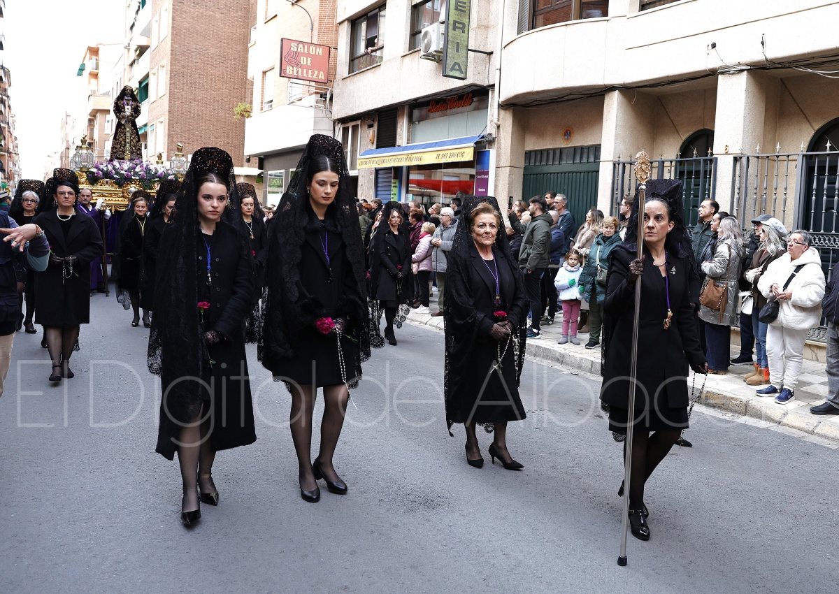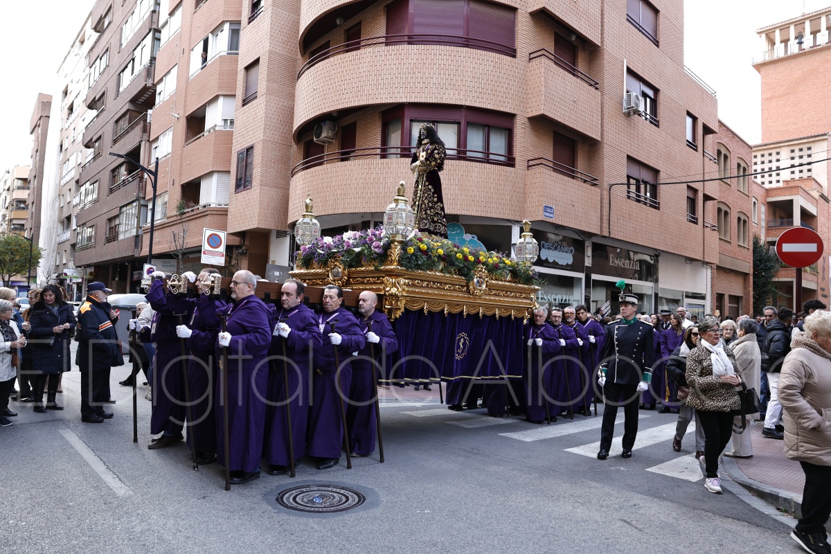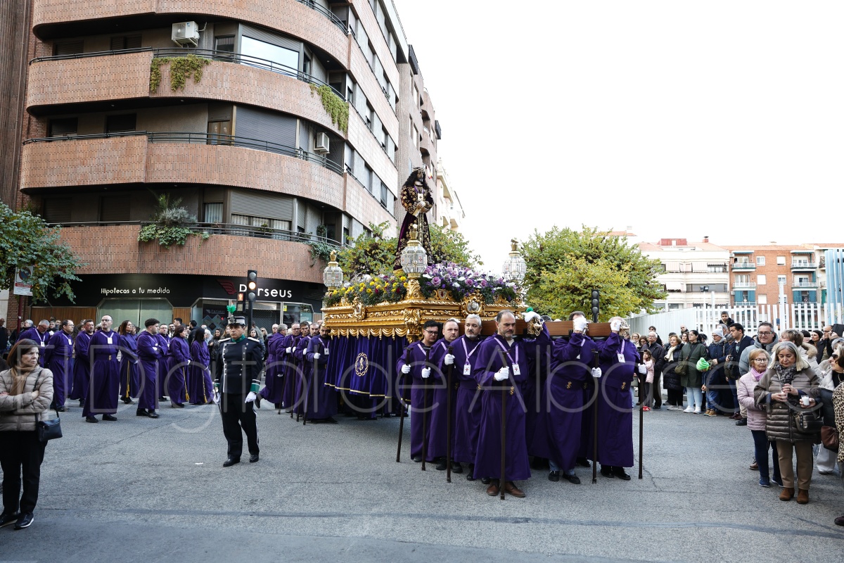 Pero además de numerosos fieles y devotos, acompañaban en su caminar por la ciudad al Cristo de Medinaceli en esta Procesión Extraordinaria, mujeres ataviadas con la tradicional mantilla española. Un detalle que contribuía a realzar la solemnidad de este acto histórico que vivía en la tarde de este domingo, 23 de noviembre, la ciudad de Albacete con motivo del 75 aniversario de la Real e Ilustre Esclavitud de Nuestro Padre Jesús Nazareno de Medinaceli.