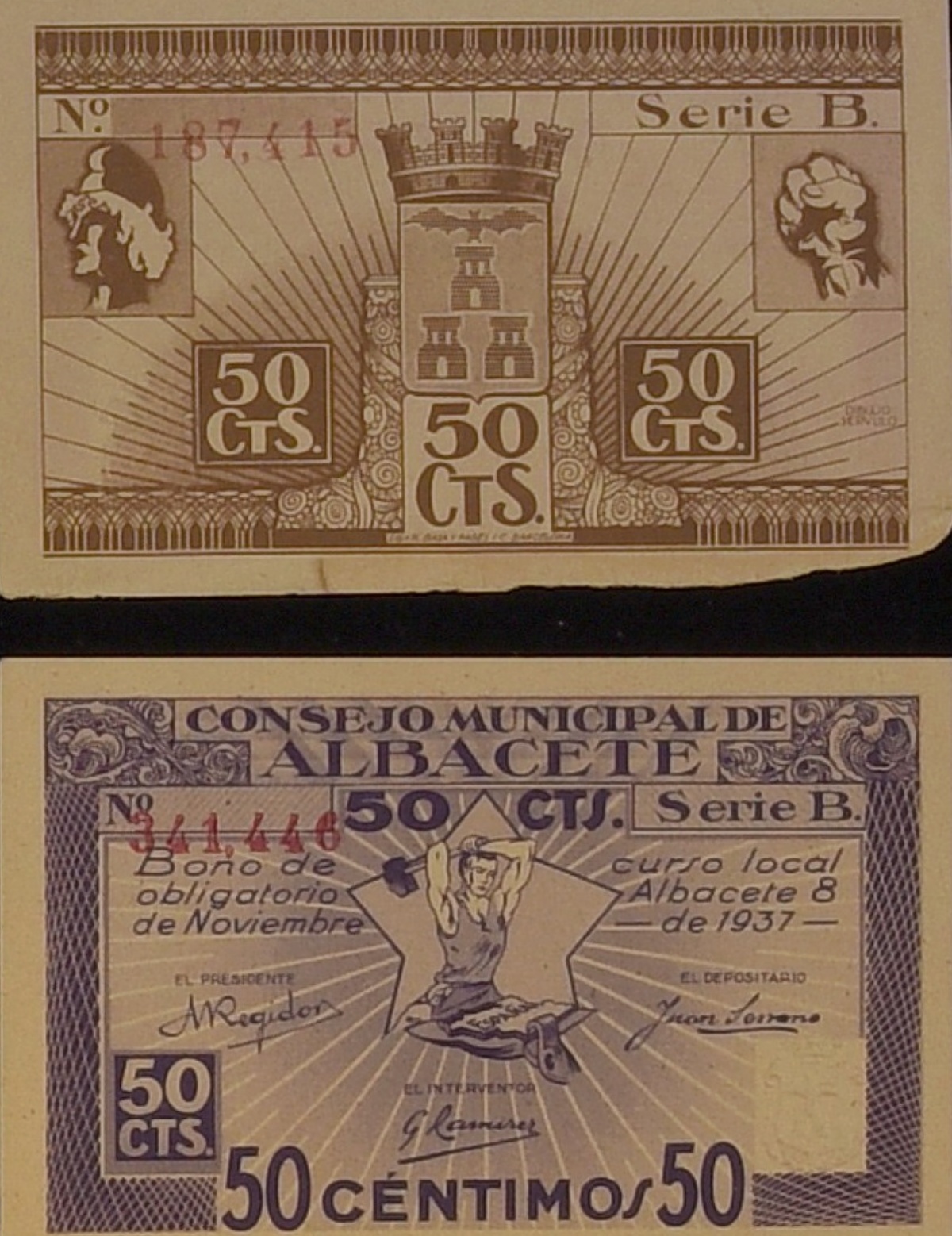 Así, estos billetes, tan modestos como imprescindibles y particulares, se convirtieron en el instrumento para mantener vivo el pulso comercial de la ciudad, garantizando que, incluso en medio del caos, Albacete pudiese tratar de sobrevivir. De este modo, en la ciudad se emitieron tres billetes con valor de 1 peseta, 25 céntimos y 50 céntimos, de los que todavía se conservan algunos ejemplares. Cabe destacar que una peseta estaba dividida en 100 céntimos, aunque las monedas fraccionarias se dejaron de utilizar debido a la devaluación de la peseta.