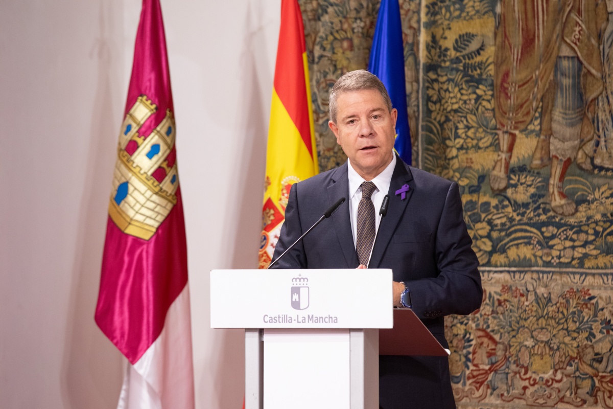 El presidente de Castilla-La Mancha, Emiliano García-Page, ha reclamado, esta mañana en Toledo, que “es necesario desterrar, lo más posible, a quienes han hecho de la violencia su bandera política” en una sociedad que “ya dejó de ser neutra, no digo neutral, neutra ante la violencia machista”, ha recalcado. “Discrepo de las formas, de los conceptos y, particularmente, de los términos en los que se discute, que sobrepasan con mucho los límites tolerables de decibelios de violencia” en la escena nacional, ha expuesto al respecto.