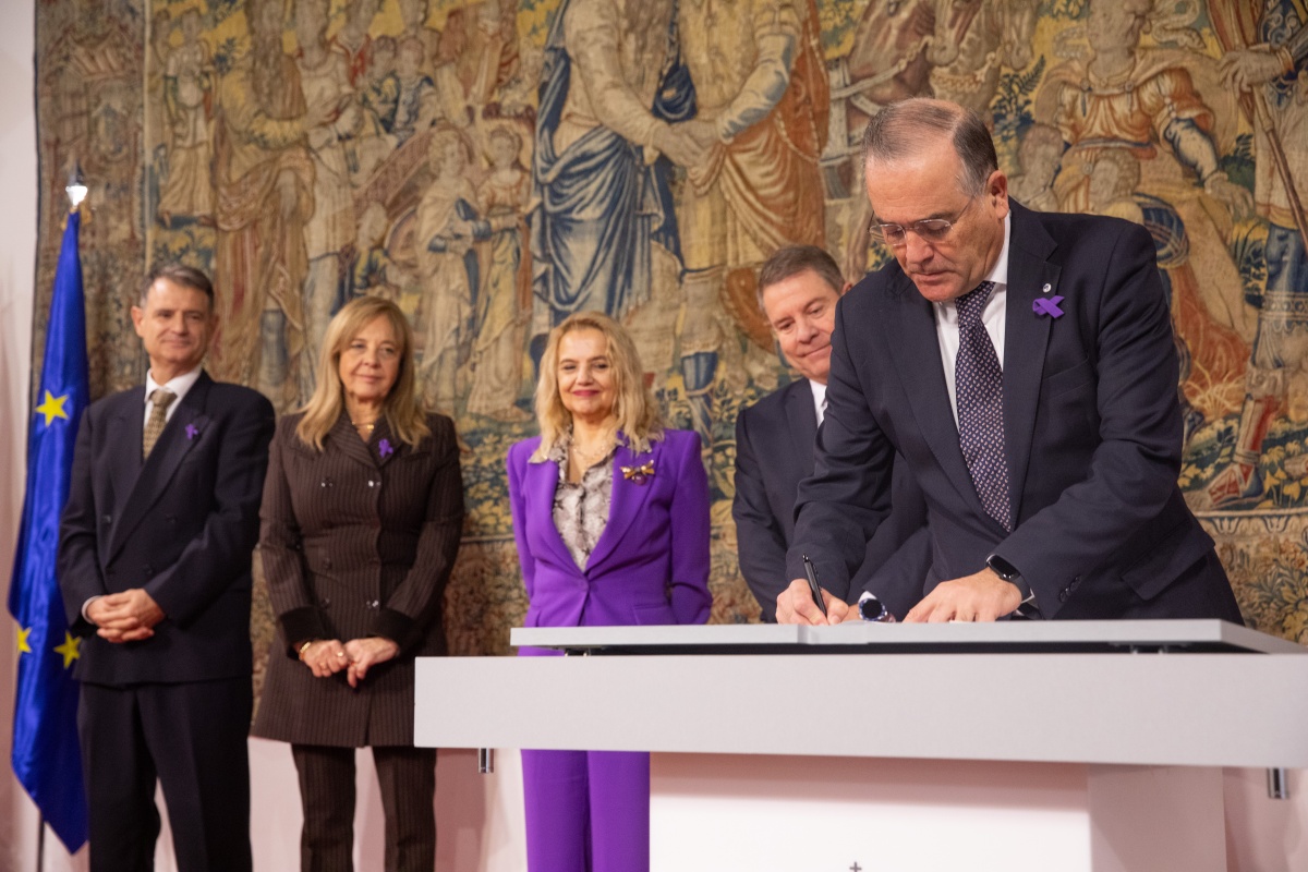 Así lo ha manifestado García-Page tras rubricar un documento que han suscrito también la presidenta del Tribunal Superior de Justicia de Castilla-La Mancha, María Pilar Astray; el Fiscal Superior de Castilla-La Mancha, Emilio Manuel Fernández; la delegada del Gobierno en la Comunidad Autónoma, Milagros Tolón; el presidente de la Federación de Municipios y Provincias de Castilla-La Mancha, José Julián Gregorio; el presidente del Consejo Autonómico de Colegios de Médicos de la región, Blas González; y la vicepresidenta en funciones del Consejo de la Abogacía de la Comunidad Autónoma, Teresa Hermida; y al que también ha invitado a sumarse al Colegio de Enfermería de la región.