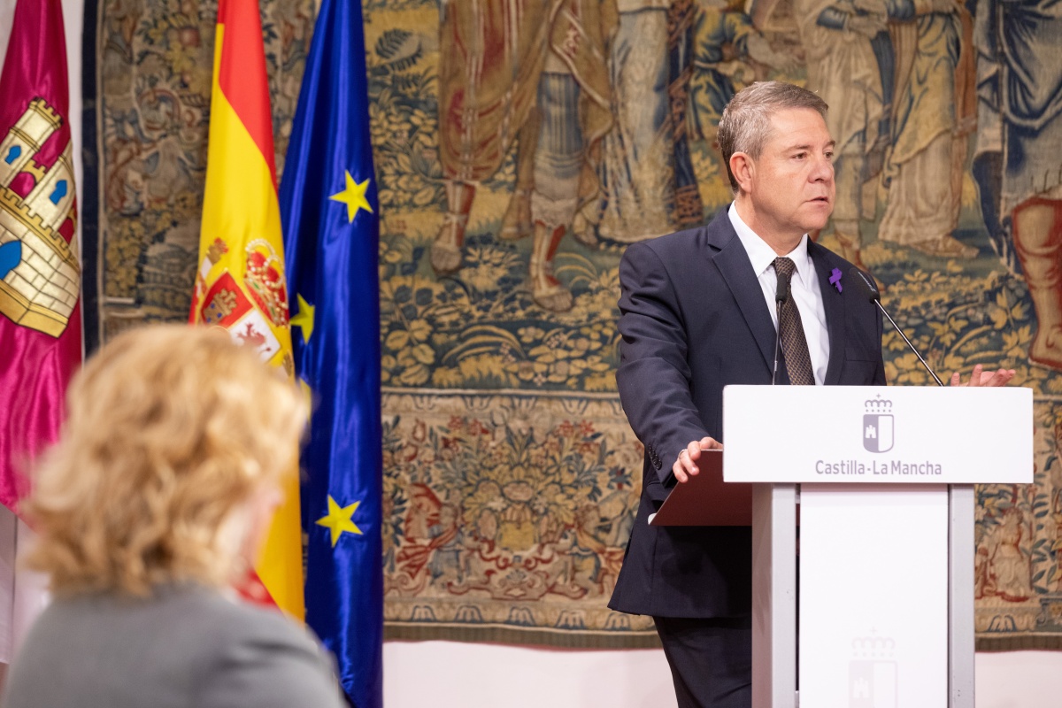 Emiliano García-Page ha destacado el “salto brutal que produjo la legislación de Castilla-La Mancha” que fue “la primera región de España y de Europa que decidió no cruzarse de brazos, no ser indiferente ante el ataque machista” con la promulgación de la primera normativa en mayo del año 2001. “Se nos acusó de todo”, ha rememorado, pero “la propuesta fue consecuencia de escuchar a muchas mujeres, particularmente mujeres mayores que no querían para sus hijas lo que ellas habían podido ver”.