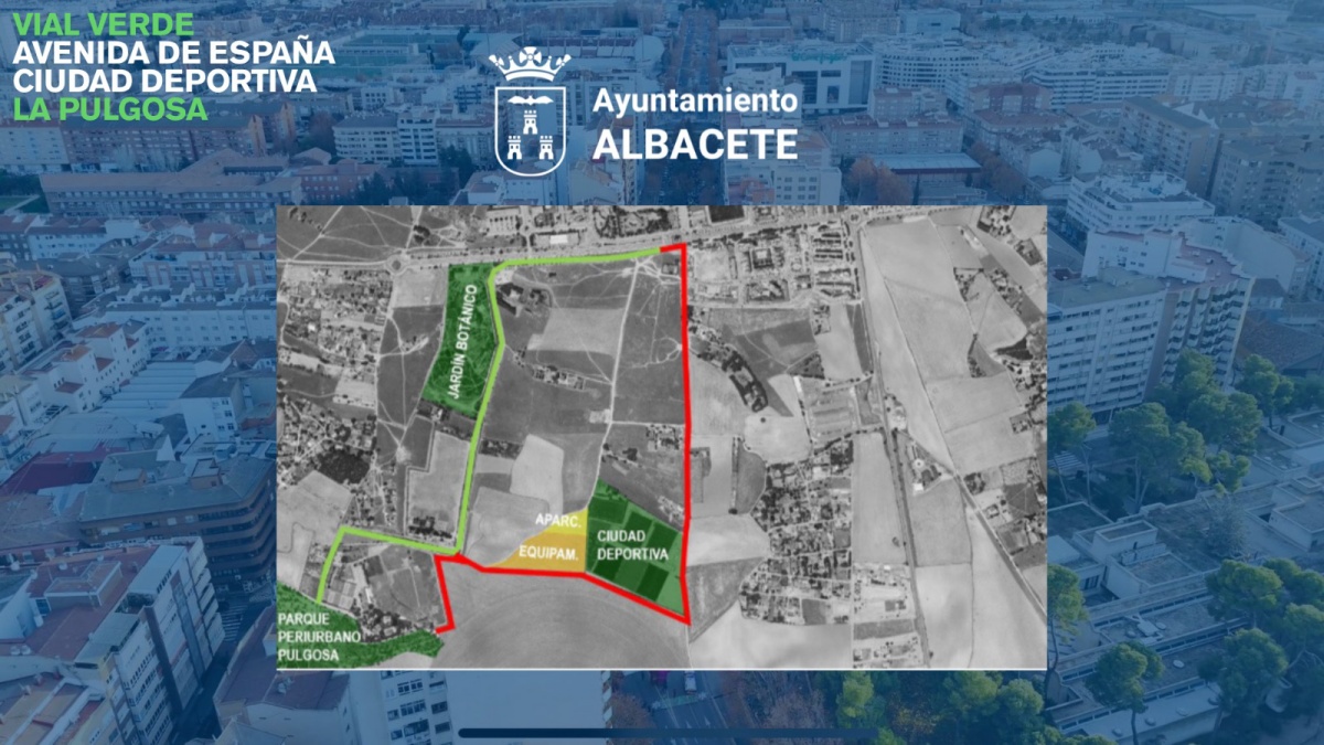 La actuación, según el alcalde, “permitirá complementar un circuito verde en el entorno de La Pulgosa, con una nueva Vía Verde de conexión de 2,3 kilómetros de longitud desde el cruce de la Avenida de España con la AB 20 hasta la Ciudad Deportiva, donde compartirá espacio con el nuevo vial de tráfico rodado a lo largo de algo más de 1,1 kilómetros, para continuar hasta La Pulgosa rodeando el Tiro Pichón por la parte de atrás y generando un nuevo acceso al parque periurbano”. Se conseguirá así un circuito cerrado de 4,3 kilómetros en el entorno de La Pulgosa, sumando los dos kilómetros de la actual Vía Verde y los 2,3 de la nueva propuesta.