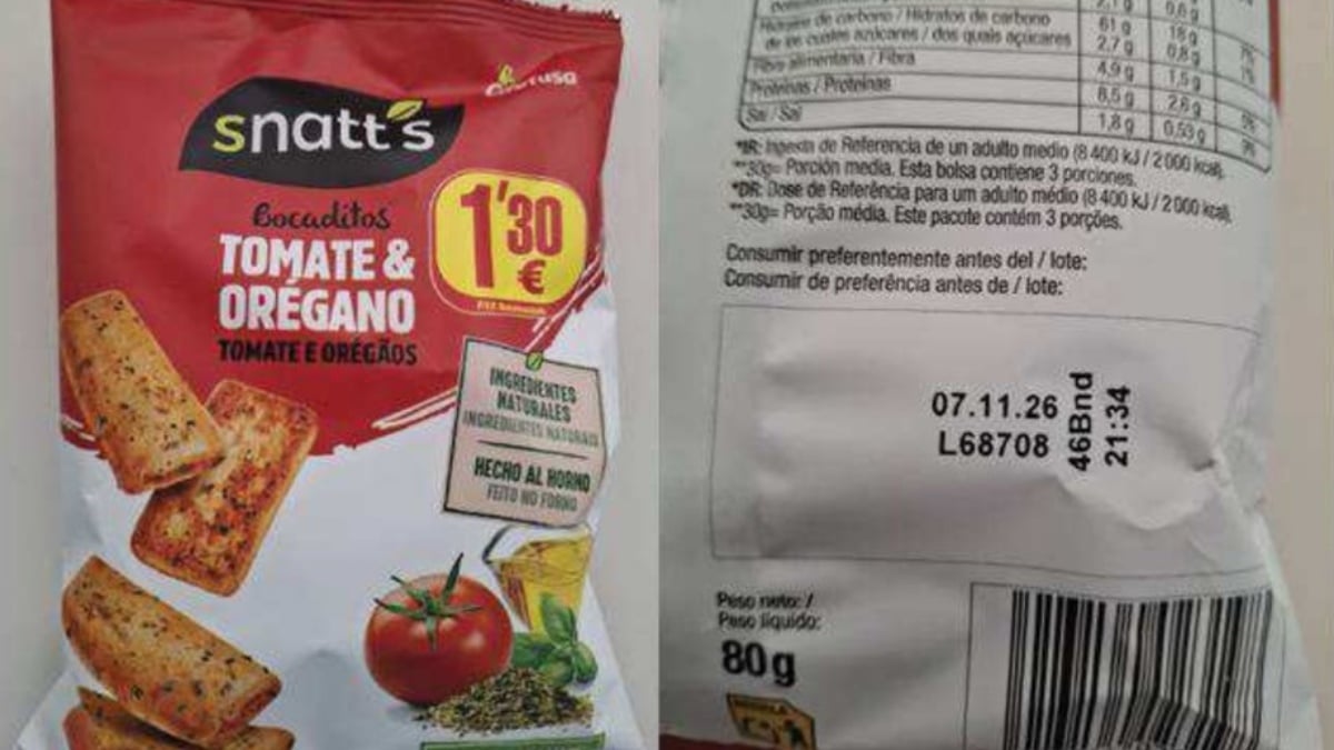 El producto afectado es ‘Bocaditos tomate & orégano’ de la marca Snatt’s, con número de lote 68708, fecha de caducidad 07/11/26 y código de barras 8413164023198. Se presenta envasado en bolsa con un peso por unidad de 80 gramos.