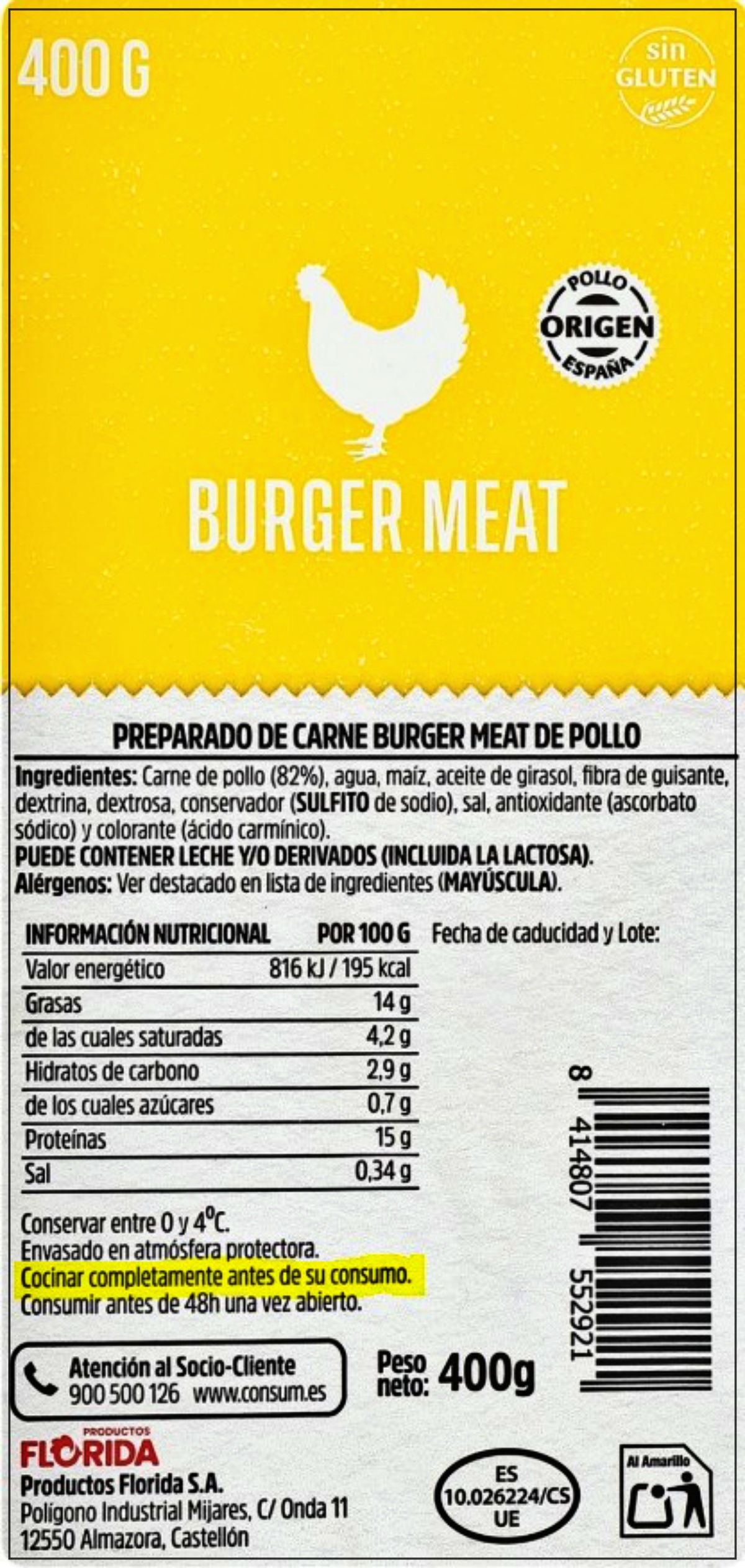 De este modo, los supermercados Consum han retirado el producto preparado de carne ‘burger meat’ de pollo, de su marca propia, ante la presencia de salmonela, según ha informado la empresa y notificado la Agencia Española de Seguridad Alimentaria y Nutrición (Aesan).