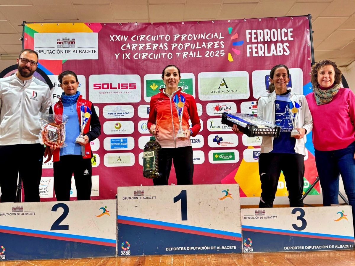 En categoría femenina, la ausencia de la campeona del Circuito Provincial, Mª Ángeles Magán Talavera, dejó el protagonismo en manos de Eva Valera García (C.A. 27 de Agosto de Madrigueras) y Mª Carmen Risueño Sánchez (C.A. Kronos). Valera, decidida a repetir su triunfo en esta prueba por tercer año consecutivo, logró imponerse una vez más, sumando así su cuarta victoria en el circuito. Risueño fue segunda y la corredora local Rebeca Juncos Alfaro (C.A. Navas de Jorquera) completó el podio femenino, obteniendo además el premio como primera atleta local y el reconocimiento especial de la Hermandad de Donantes de Sangre de Albacete por su posición 71 en la general.