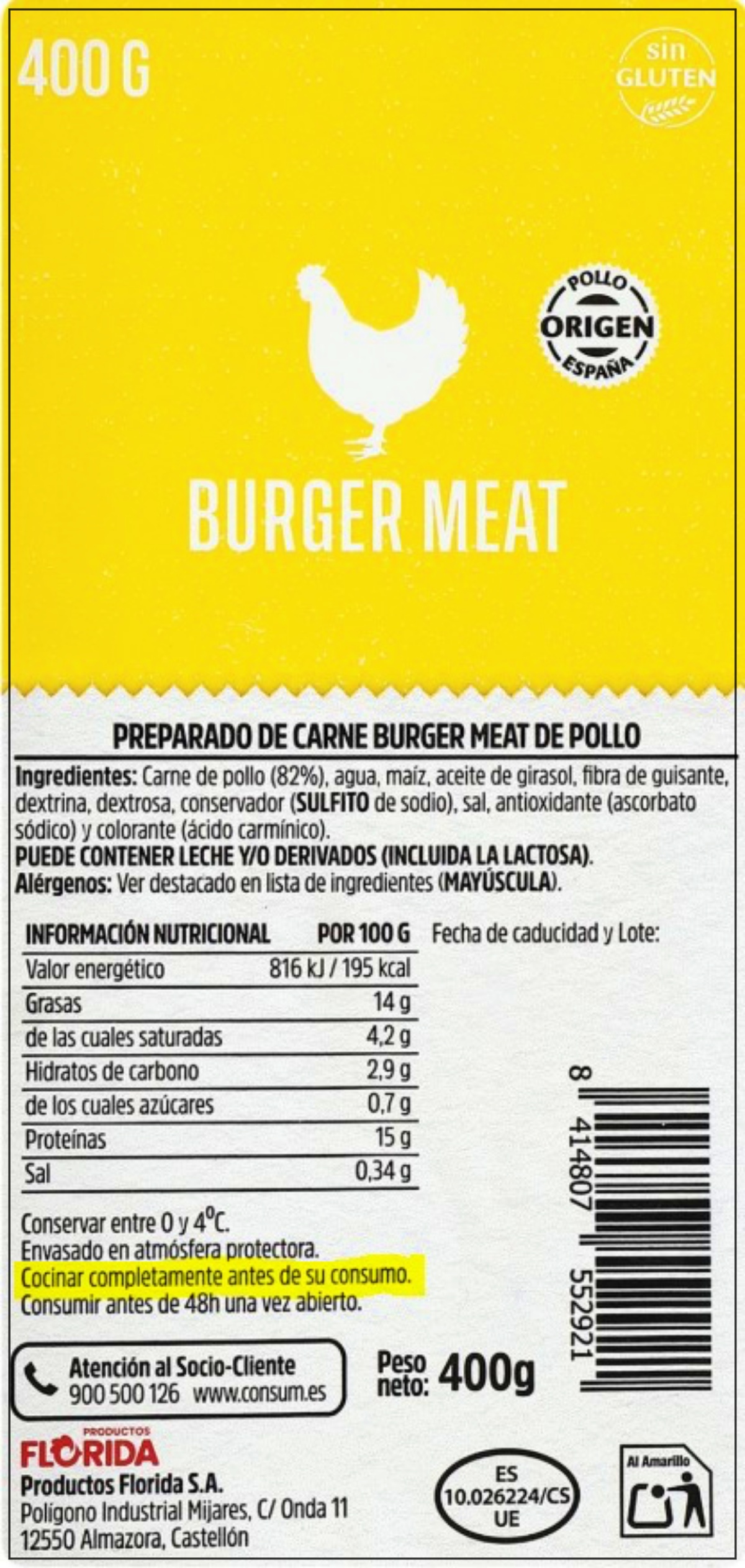 Si en las últimas fechas usted, como cliente, ha ido a algún supermercado CONSUM de Andalucía, Aragón, Comunidad Valenciana, Cataluña, Murcia o Castilla-La Mancha, podría haberse dado el caso de que haya comprado ‘Burger Meat’ de pollo contaminada por salmonela. El producto en cuestión es el que se vende bajo la marca propia de la citada cadena de supermercados, y al haberse distribuido en Castilla-La Mancha es imposible descartar al 100% que alguna bandeja de los lotes afectados no haya podido venderse o ponerse a la venta en Albacete.