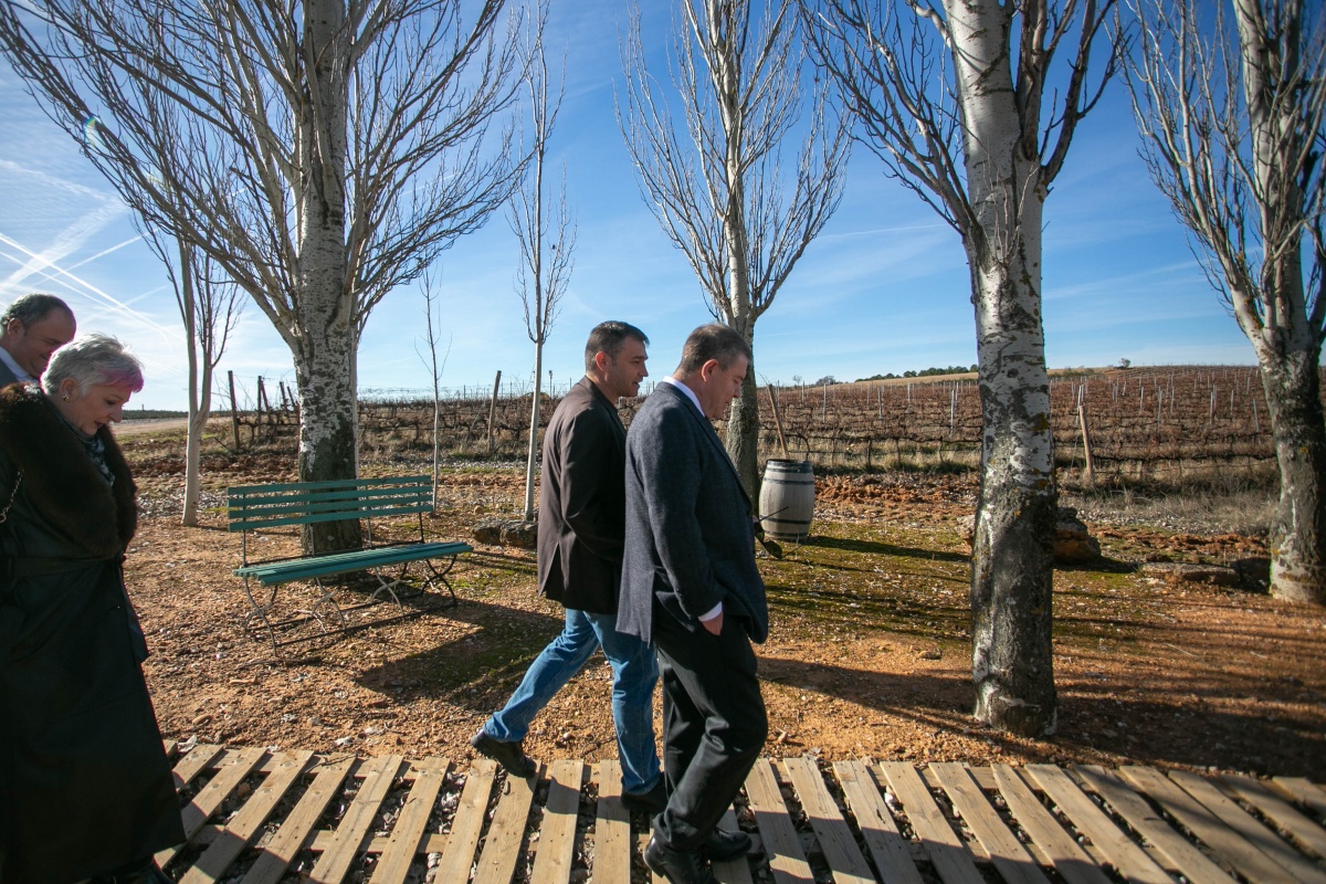 Así lo ha puesto de manifiesto el consejero de Agricultura, Ganadería y Desarrollo Rural, Julián Martínez Lizán, que ha acompañado al presidente de Castilla-La Mancha, Emiliano García-Page, en la visita a esta bodega. Un acto en el que ha estado el presidente de la bodega Río Negro, José Manuel Fuentes; su gerente, Fernando Fuentes; el alcalde de Cogolludo, Juan Alfonso Fraguas; la delegada de la Junta, Rosa García; y el presidente de la Diputación de Guadalajara, José Luis Vega.