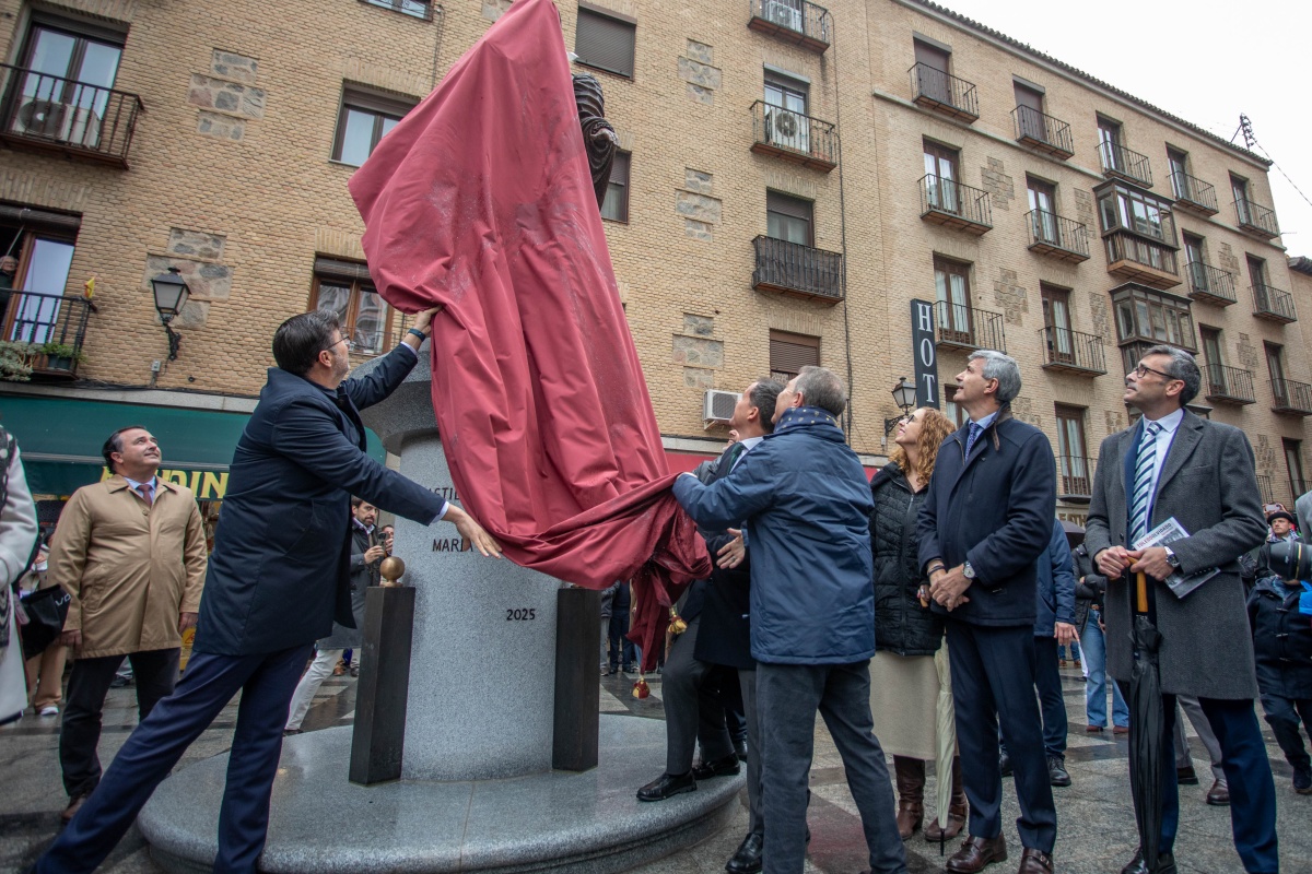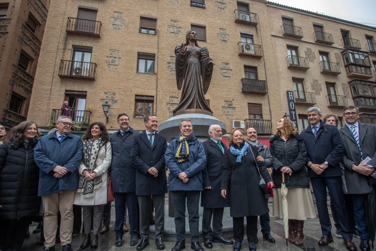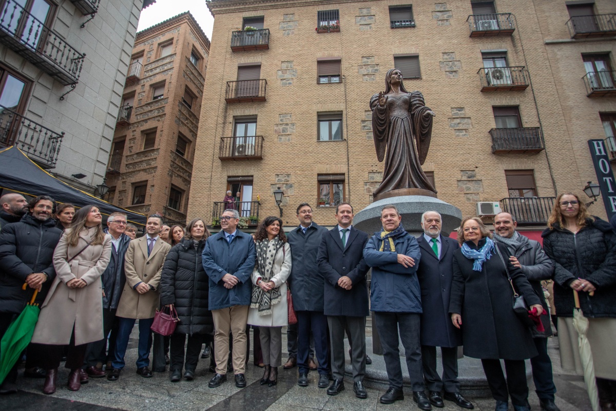 A la inauguración de esta escultura también ha asistido el presidente de las Cortes de Castilla-La Mancha, Pablo Bellido; la consejera de Igualdad, Sara Simón y el alcalde de Toledo, Carlos Velázquez. El descubrimiento de la estatua ha estado amenizado por un grupo de dulzainas procedentes de La Sagra.