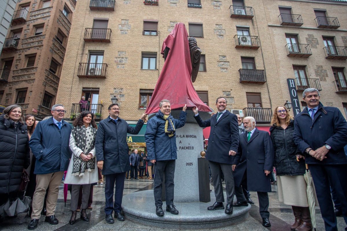 “Esta es una forma, si me lo permiten, de reivindicarnos a nosotros mismos”. Así se ha pronunciado esta mañana el presidente de Castilla-La Mancha, Emiliano García-Page, ante la estatua que María Pacheco tiene, desde hoy, en la ciudad de Toledo. Una efigie que ha financiado el Parlamento autonómico y con la que la región, y la ciudad de Toledo, rinden homenaje a una mujer que representa “uno de los valores que llevamos más a pecho, que es la igualdad y el papel específico, y en este caso solemne, que tiene María Pacheco como mujer”, ha puntualizado el jefe del Ejecutivo regional.