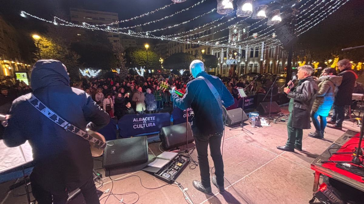 El alcalde de la ciudad, Manuel Serrano, ha asistido al concierto ‘Villancicos en calve de rock’ que esta tarde ha ofrecido el grupo ‘Nomas de Papas’ en la Plaza del Altozano, junto a la concejala de Cultura, Elena Serrallé, con motivo de la inauguración de la programación de la Navidad Cultural 2025/2026 de la que podremos disfrutar hasta el 18 de enero en todos los barrios y pedanías de Albacete para que la magia navideña inunde todos los rincones del municipio.