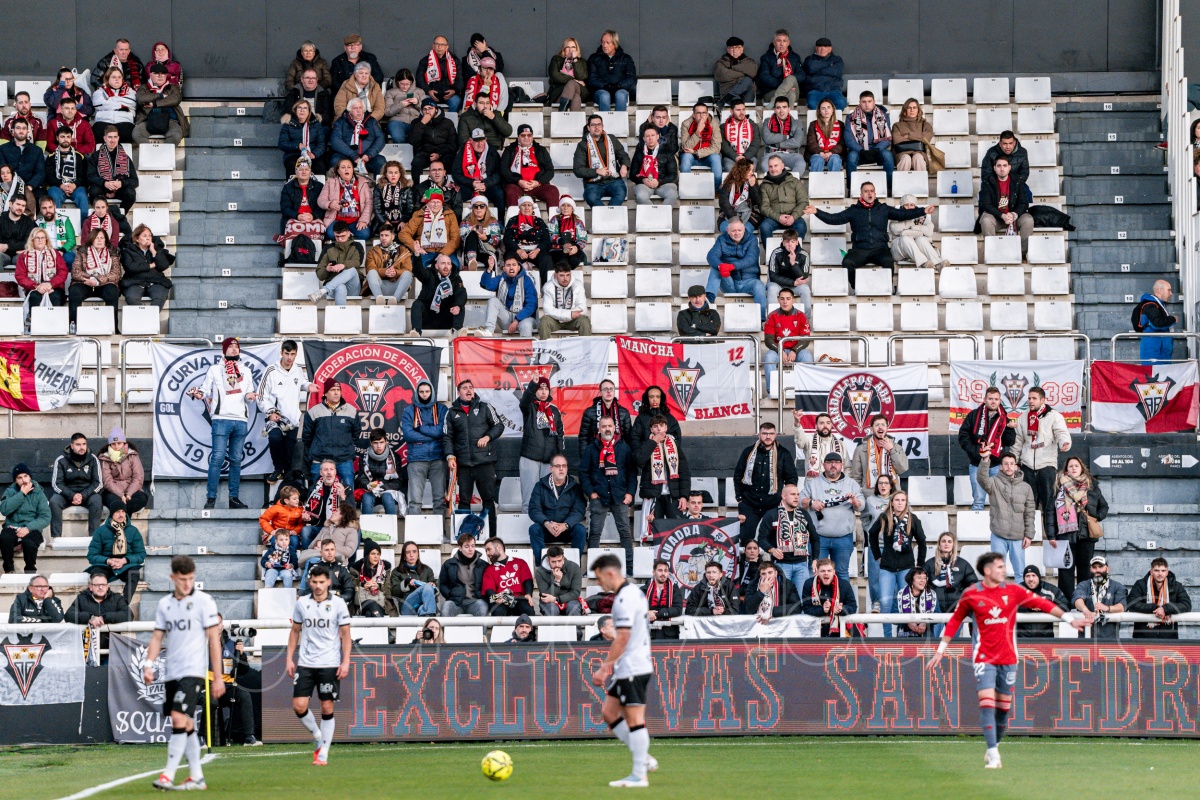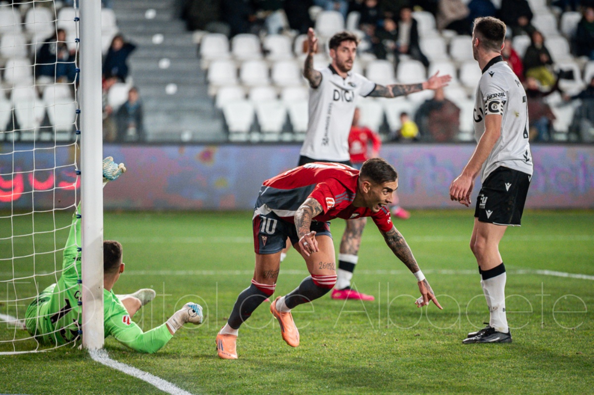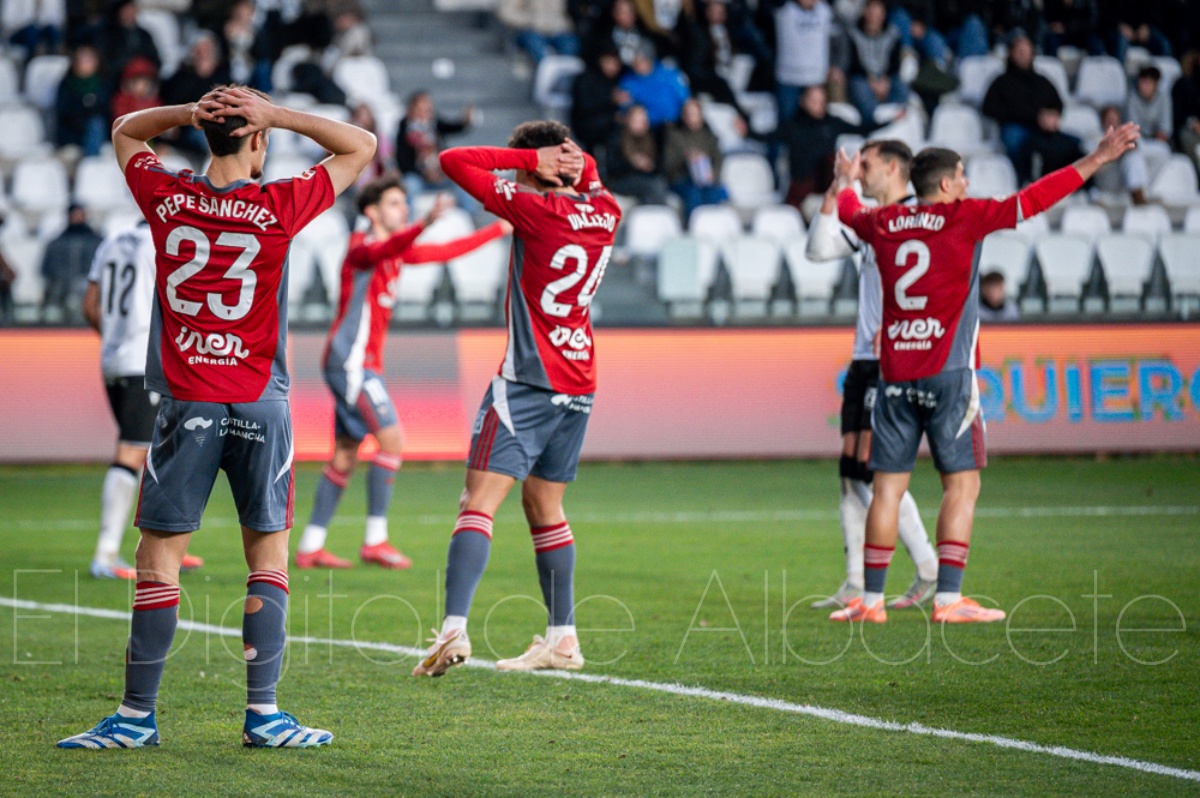 Llegados al minuto 90, el cuarto colegiado mostró el cartelón con el alargue a instancias del árbitro principal y fueron 6 los que hubo que añadir al tiempo reglamentario, no moviéndose el marcador y ‘subiéndose’ al autobús del Albacete los tres puntos.