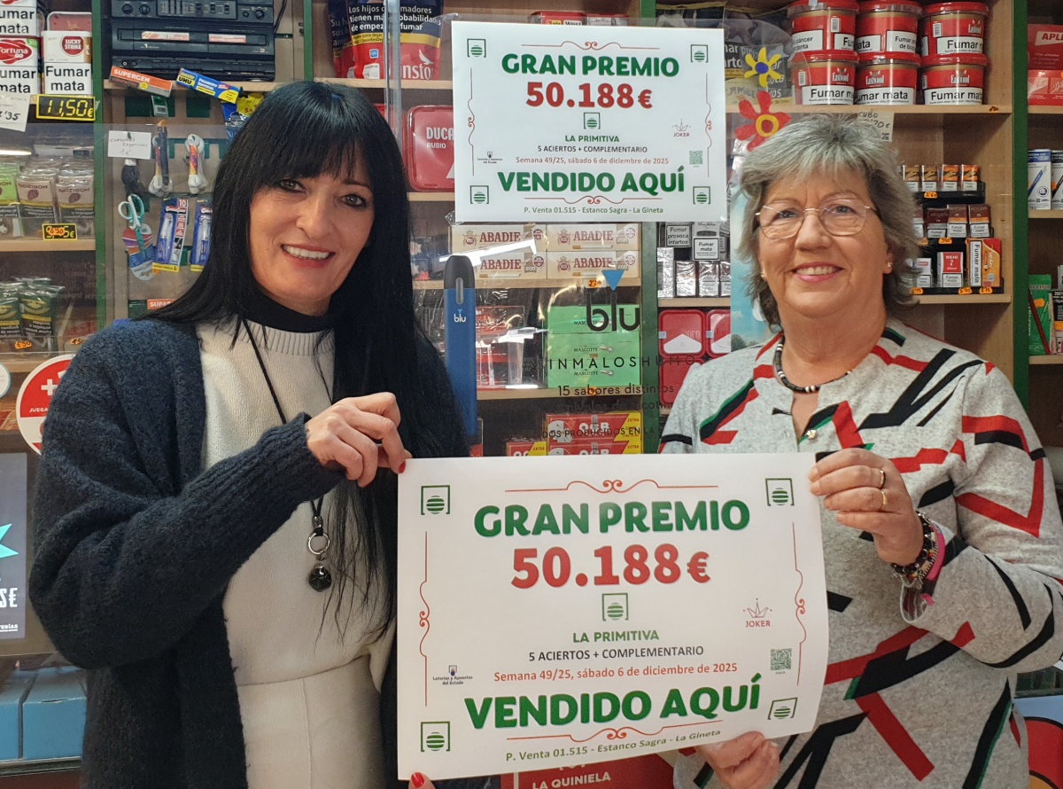 El Sorteo 147/25 de la Lotería Primitiva, celebrado el sábado 6 de diciembre de 2025, ha dejado un importante premio en la localidad de La Gineta. Uno de los cuatro boletos agraciados con un premio de Segunda Categoría (5 aciertos + complementario) ha sido validado en el Punto de Venta Mixto n.º 01.515 – Estanco Sagra, situado en la Plaza Mayor, 9.
