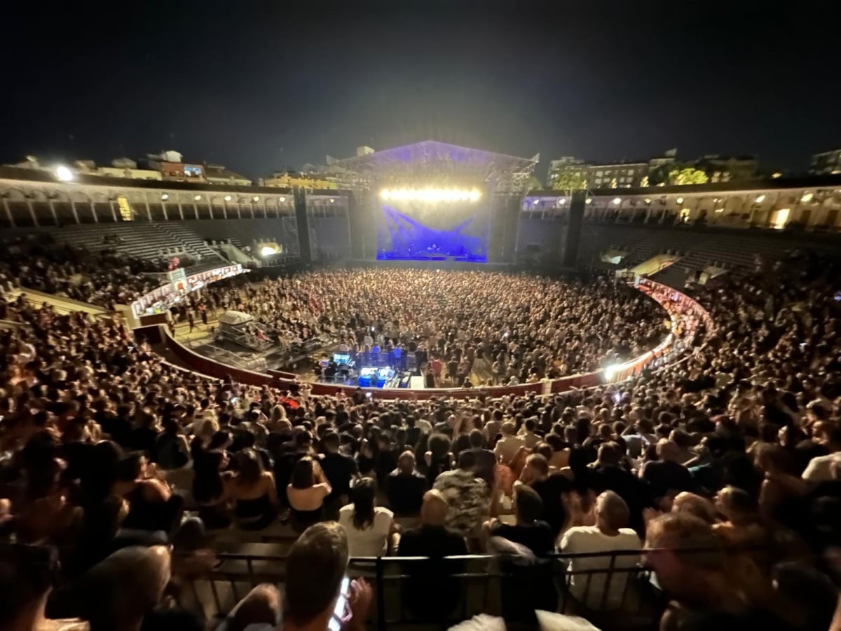 Pasadas las 21:00 horas, Robe apareció sobre el escenario ante un público entregado desde el primer minuto. La Plaza de Toros se convirtió en un espacio vibrante, eléctrico, casi ritual, donde cada verso era coreado a pleno pulmón.