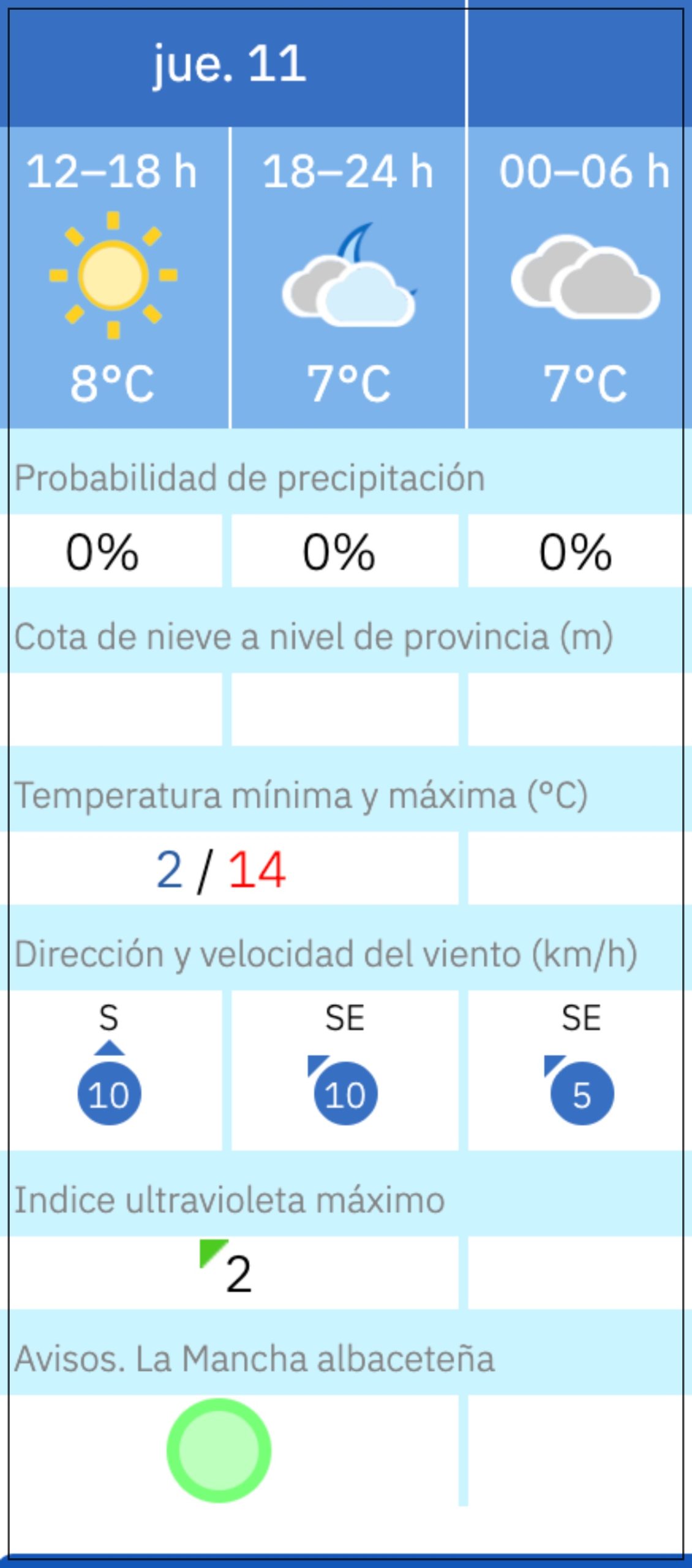 Con el fin de semana a la vuelta de la esquina, siempre es bueno tener clara la previsión meteorológica de la AEMET para Albacete. A continuación, conocemos la de este jueves; 11 de diciembre.