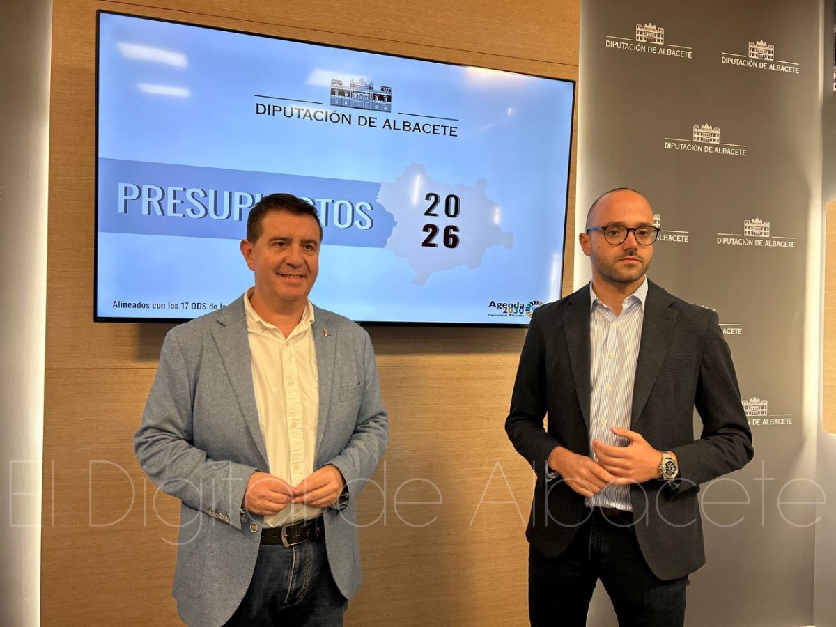 El presidente de la Diputación de Albacete, Santiago Cabañero, presentaba este jueves los Presupuestos 2026 de la institución provincial acompañado por el vicepresidente y responsable del Área Económica, Fran Valera. Un proyecto de presupuestos que pasarán por sesión plenaria este próximo 12 de diciembre y que detallaban en rueda de prensa de forma pormenorizada.