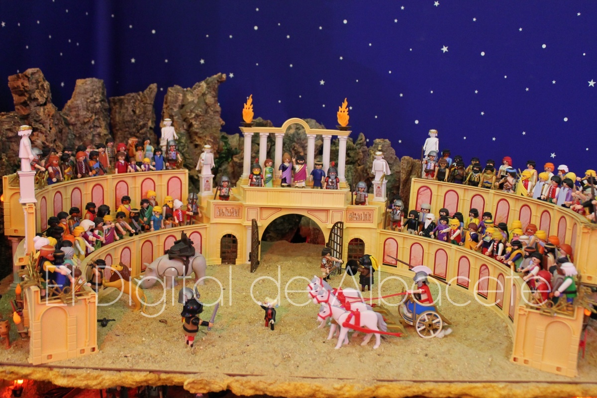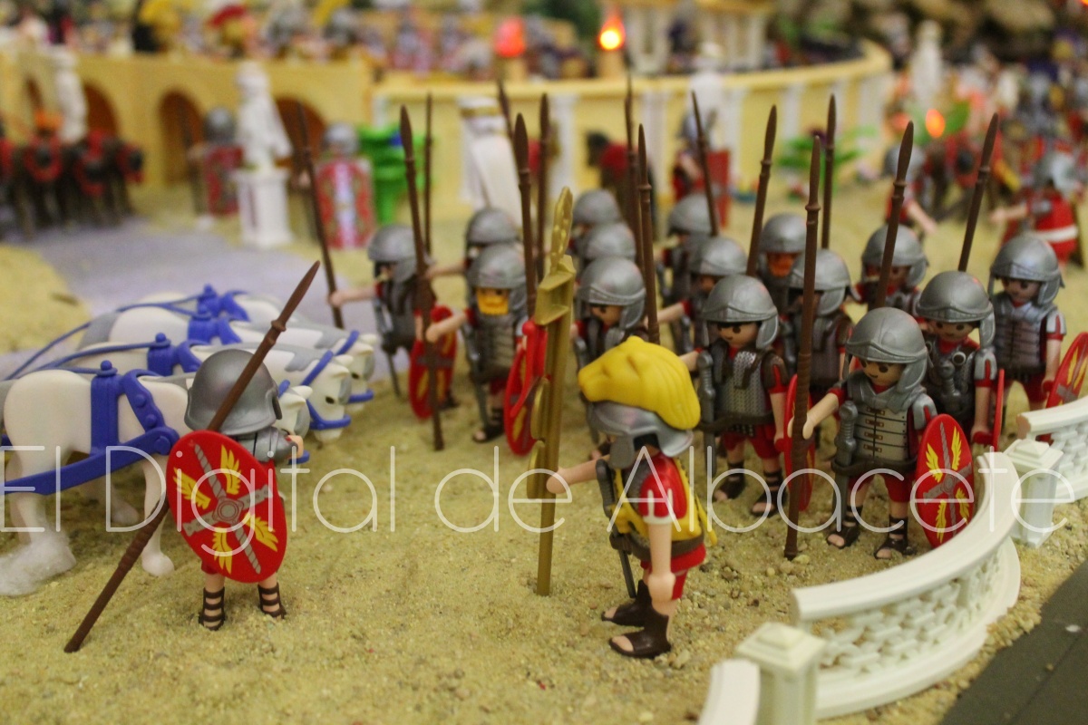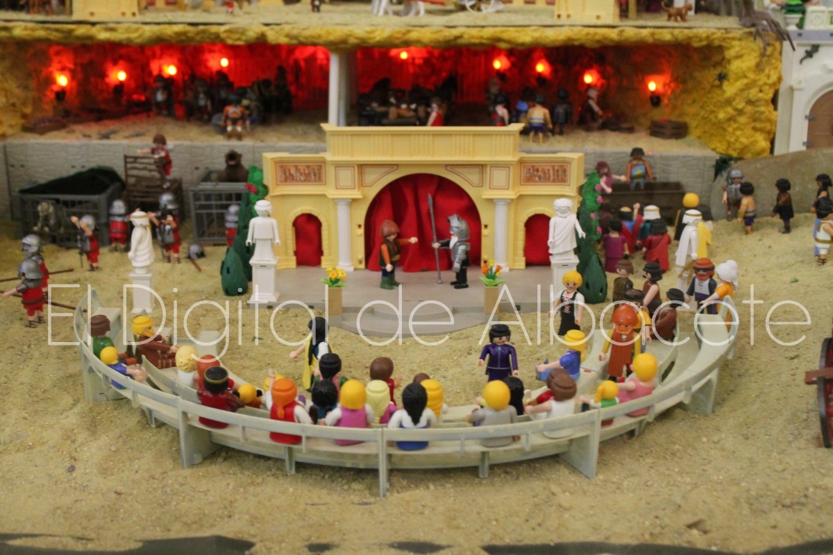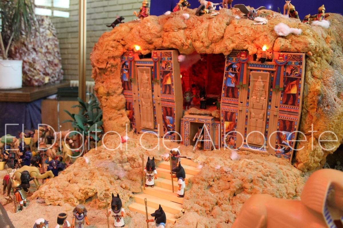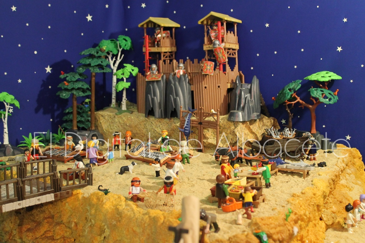 Como en ediciones anteriores, en este original belén se pueden encontrar figuras de Playmobil representando las principales escenas bíblicas. “Siempre incluimos las más representativas, desde la Anunciación a María, el Nacimiento de Jesús, su vida en Egipto, su paso por la sinagoga cuando era un niño, y, por supuesto, El sueño de José, La boda de María y José, María embarazada, María con su prima Isabel buscando posada, La anunciación de los pastores, o el Coro de Ángeles. Pero, como cada año, el belén trae muchas novedades. Así, además de esas principales escenas bíblicas, este año hemos añadido escenas del Antiguo Testamento como la de Moisés abriendo las aguas, el Arca de Noé, David y Goliat, Adán y Eva, y por último Julio Cesar y Cleopatra en el encuentro en Egipto. Además, como el 9 de noviembre se celebró la conmemoración de los 650 años de la obtención del Privilegio de Villazgo en 1375, un hito histórico que le otorgó la independencia y el título de ‘Villa’ (Villa de Albacete), por Don Alfonso de Aragón, Marqués de Villena, hemos querido representarlo en el belén. De este modo aparece el propio Marqués de Villena, junto a dos parejas de manchegos, el cuchillero, el sembrador, y el cartel del aniversario”, señala.