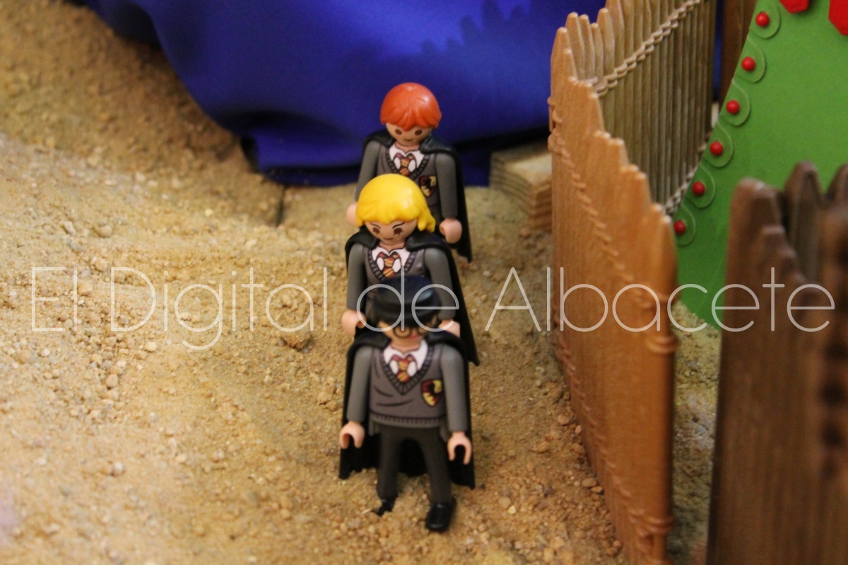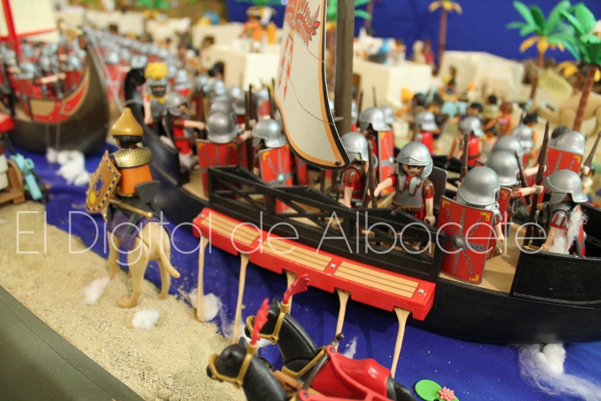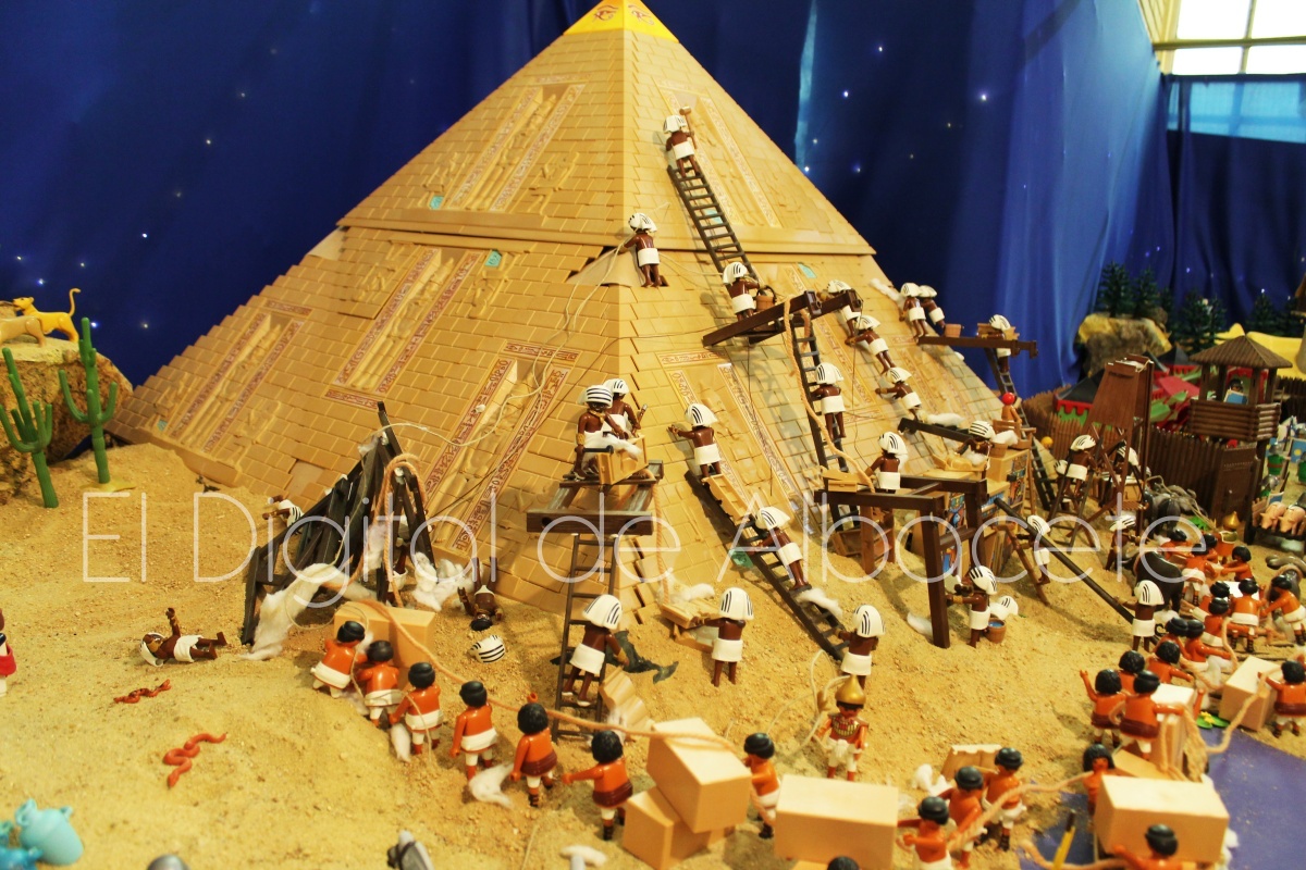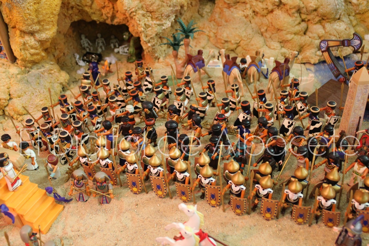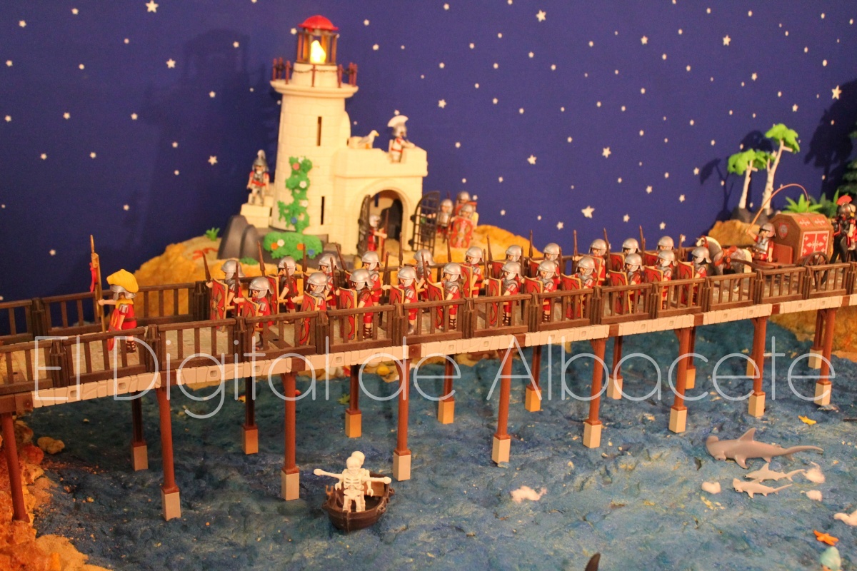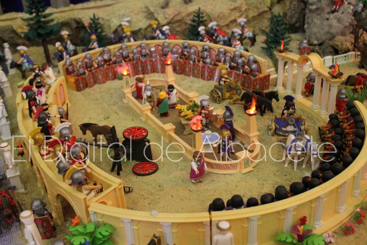 Como en ediciones anteriores, en este original belén se pueden encontrar figuras de Playmobil representando las principales escenas bíblicas. “Siempre incluimos las más representativas, desde la Anunciación a María, el Nacimiento de Jesús, su vida en Egipto, su paso por la sinagoga cuando era un niño, y, por supuesto, El sueño de José, La boda de María y José, María embarazada, María con su prima Isabel buscando posada, La anunciación de los pastores, o el Coro de Ángeles. Pero, como cada año, el belén trae muchas novedades. Así, además de esas principales escenas bíblicas, este año hemos añadido escenas del Antiguo Testamento como la de Moisés abriendo las aguas, el Arca de Noé, David y Goliat, Adán y Eva, y por último Julio Cesar y Cleopatra en el encuentro en Egipto. Además, como el 9 de noviembre se celebró la conmemoración de los 650 años de la obtención del Privilegio de Villazgo en 1375, un hito histórico que le otorgó la independencia y el título de ‘Villa’ (Villa de Albacete), por Don Alfonso de Aragón, Marqués de Villena, hemos querido representarlo en el belén. De este modo aparece el propio Marqués de Villena, junto a dos parejas de manchegos, el cuchillero, el sembrador, y el cartel del aniversario”, señala.