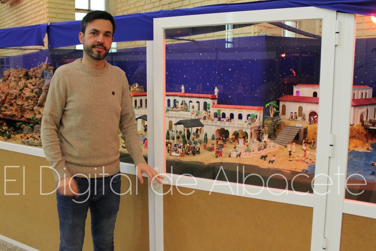 Julián Gil Tévar, coleccionista de Playmobil, y creador e impulsor de esta iniciativa, nos cuenta que “es el undécimo año que se monta este belén, y sigo con la misma ilusión que el primer año. Comencé con un belén pequeñito, de unos 10 metros cuadrados, y hemos ido ampliando, porque la idea es ir mejorándolo en cada edición. Ya el año pasado llegamos a los 50 metros cuadrados, 14 más que en años anteriores. Al principio se montaba en un lateral, y ahora hemos tenido que cruzar también a la otra parte, y el belén da toda la vuelta haciendo un recorrido por toda la capilla. Es un trabajo muy delicado, ya que al estar compuesto exclusivamente por figuras de Playmobil, cuesta mucho que se quede todo bien sujeto, y hay que dedicarle mucho tiempo. Por este motivo, prácticamente acabando la feria de Albacete a finales de septiembre, comenzamos a montarlo y lo terminamos a primeros de diciembre. Este año, entre familia, amigos y gente de la parroquia, hemos participado en el montaje alrededor de 10 personas”.
