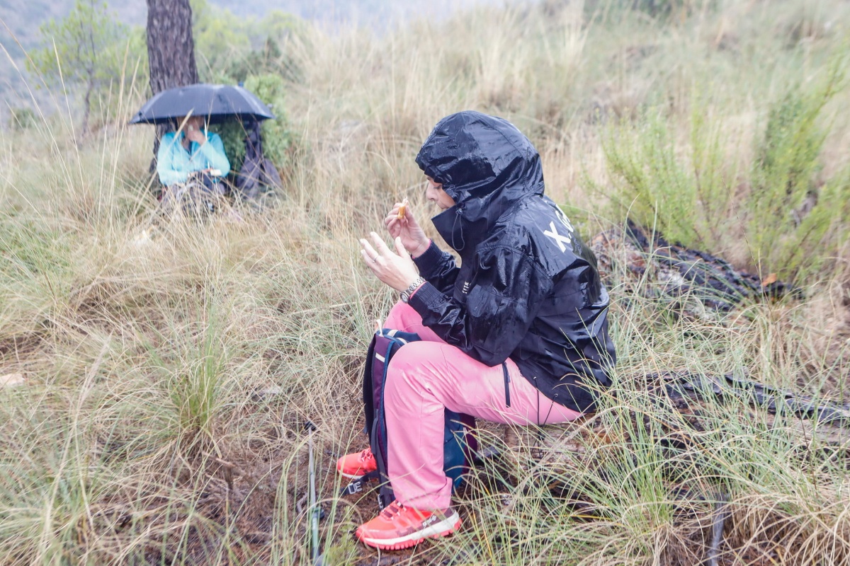Comenzaría entonces una ligera lluvia y continuarían la marcha para recorrer distintos rincones por donde antiguamente pasaban los vecinos del pueblo para desarrollar sus labores en el campo, por lo tanto, muchas sendas han sido recuperadas para la ocasión. Harían una parada técnica, y muy de agradecer, para, por cortesía del Ayuntamiento de municipio, tomar un rico y calentito chocolate con magdalenas, que les daría fuerzas para continuar con la marcha.