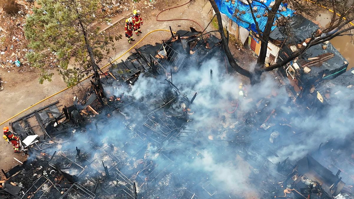 En ese caso, las llamas comenzaron en torno a las 13:00 horas y, según indicaban en su momento fuentes oficiales, el incendio se habría originado entonces de manera fortuita mientas varias personas se encontraban preparando la comida. Rápidamente, las llamas se propagaron a chabolas adyacentes debido al material inflamable que fueron encontrando a su paso, aumentando de manera drástica y muy rápida las dimensiones de los hechos. En este incendio quedaron calcinadas 25 chabolas.