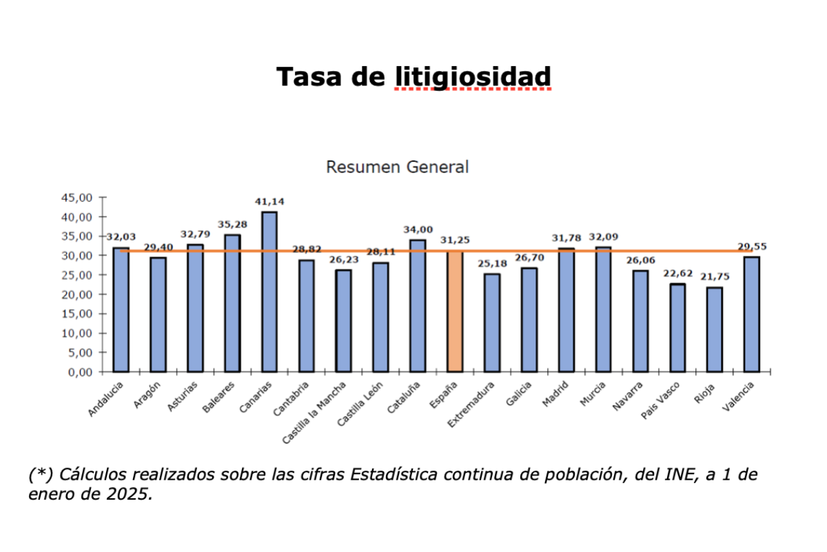 La tasa de litigiosidad en la región en el segundo trimestre del año fue de 26,23 asuntos por cada 1.000 habitantes.
