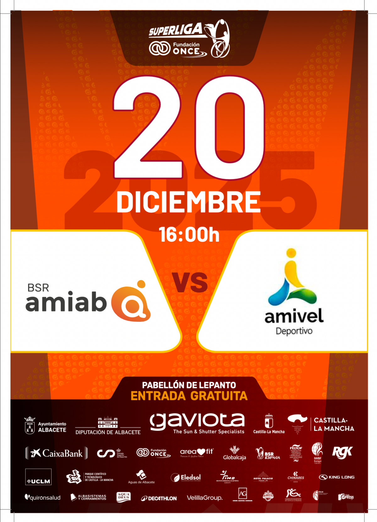 El BSR amiab disputa en el Pabellón Lepanto su último partido de 2025 con la visita del Amivel Reyes Gutiérrez en la séptima jornada de la Superliga BSR ‘Trofeo Fundación ONCE’, encuentro previsto para las 16 horas en el Pabellón Lepanto.