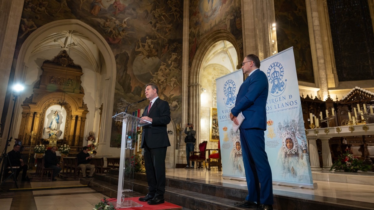 Un acto en el que el presidente de la Real Asociación de la Virgen de Los Llanos, Antonio Fernández-Pacheco, ha estado acompañado por el presidente de Castilla-La Mancha, Emiliano García-Page; el alcalde de Albacete, Manuel Serrano; el presidente de la Diputación Provincial, Santiago Cabañero; el consejero de Educación, Cultura y Deportes, Amador Pastor; el obispo de la Diócesis de Albacete, Ángel Román; y el director general de Globalcaja, Pedro Palacios, entre otras autoridades.