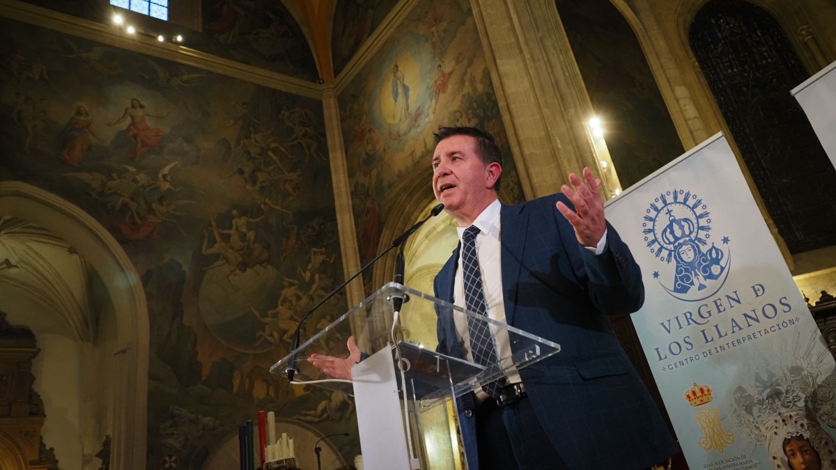 Manuel Serrano ha señalado que la Virgen de Los Llanos está presente en el corazón de todos los albaceteños y en muchos espacios en la ciudad, recordando que se venera en su capilla de la Catedral; en el Ayuntamiento, y durante los diez días de Feria en su capilla del Recinto, en este Centro de Interpretación, y también en el Vaticano tras haberle entregado a su Santidad el Papa León XVI, junto a Obispo de la Diócesis albaceteña, una Imagen de la Virgen de Los Llanos durante su visita a Roma con motivo del Jubileo de los Presos.