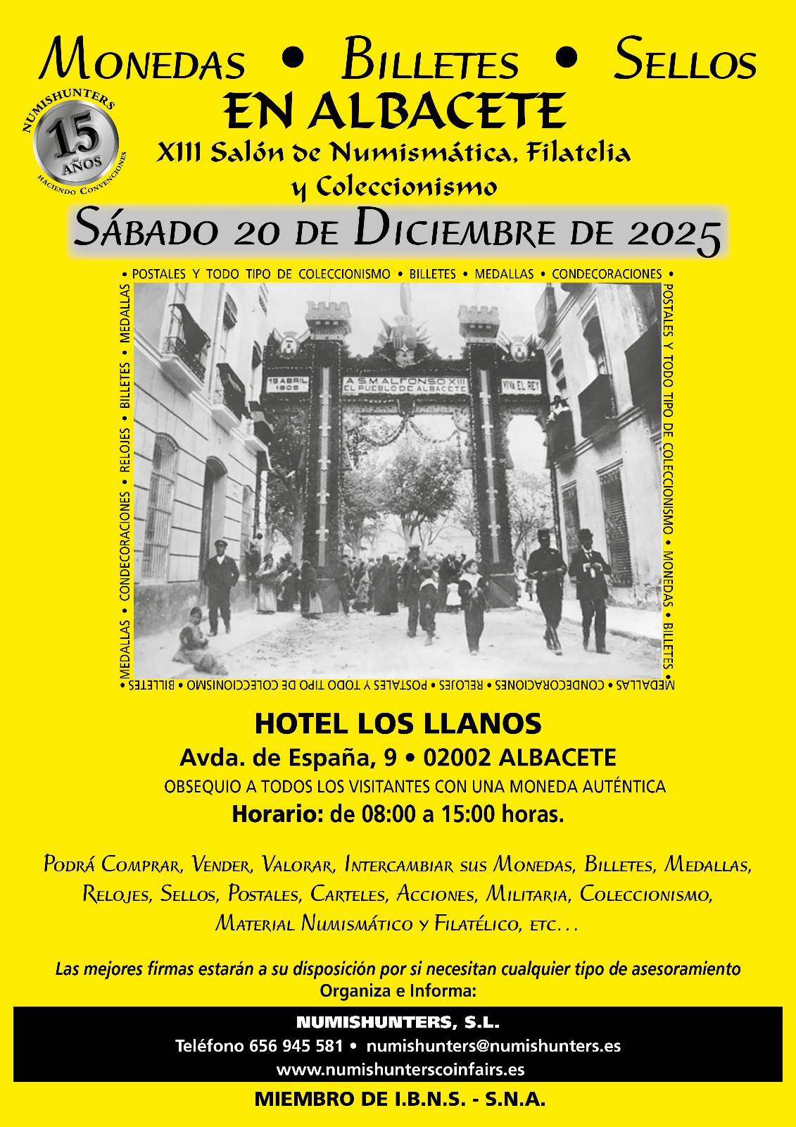 Albacete vuelve a convertirse en punto de encuentro para los amantes del coleccionismo. La capital acogerá el 20 de diciembre una nueva edición del Salón de Numismática, Filatelia y Coleccionismo, organizado por NumisHunters, una cita ya consolidada que reúne a comerciantes y aficionados de distintos puntos del país y que ofrece una oportunidad única tanto para expertos como para quienes sienten curiosidad por este mundo.