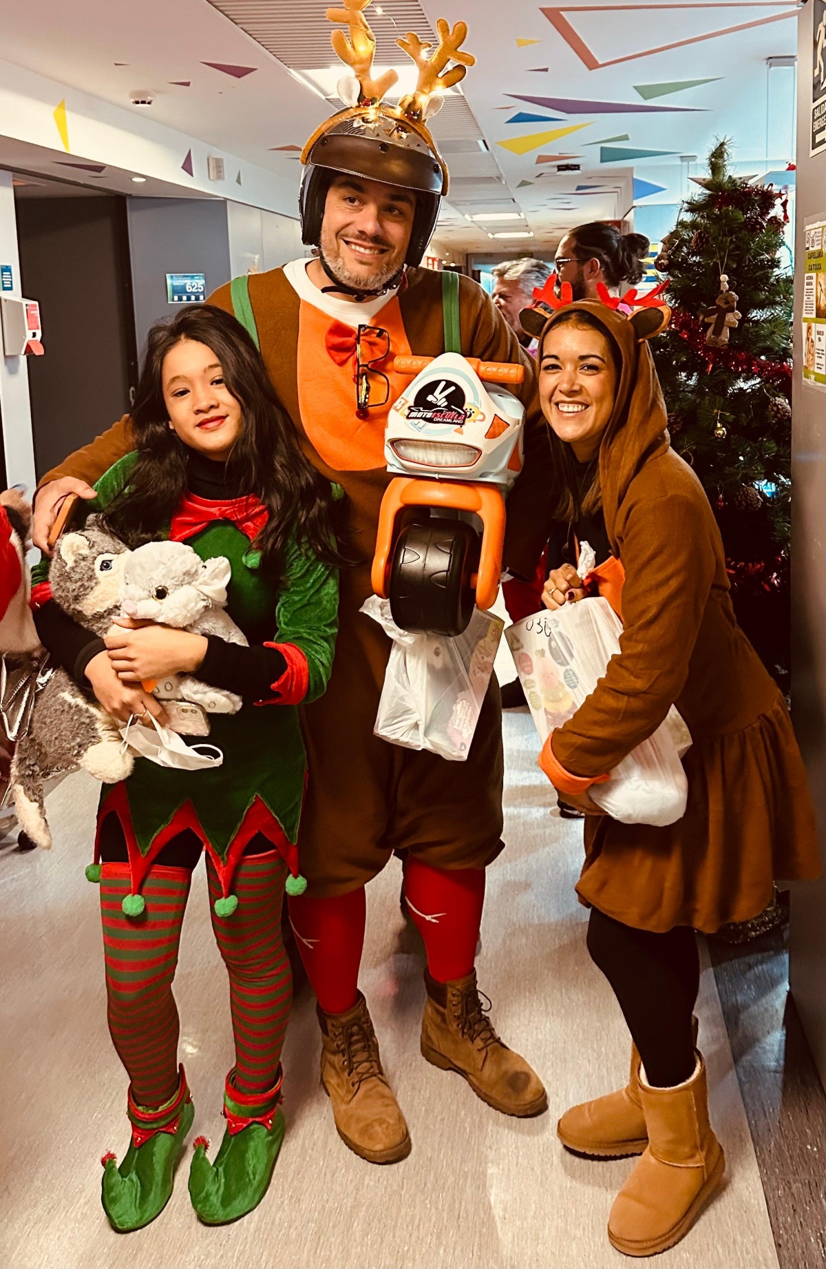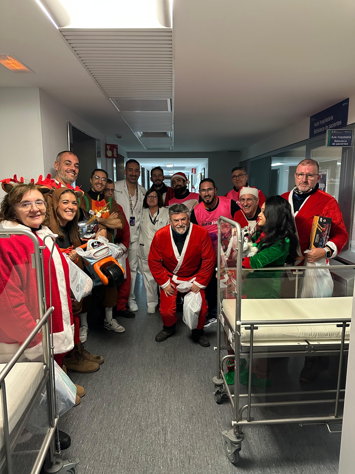 La mera roja ya se ha convertido en toda una tradición. “Tenemos un vínculo muy especial con la sexta planta del hospital, y con los años se han creado fuertes lazos de amistad con todo el personal sanitario. Estamos coordinados con ellos, y comunican nuestra llegada para que todo el mundo esté preparado en las ventanas para vernos llegar. Es algo muy emotivo, porque nosotros llevamos los regalos, pero al final el regalo nos lo llevamos nosotros, al levantar las miradas y ver todas las ventanas llenas de gente saludando. Es muy reconfortante saber que con la ‘Papanoelada’ hemos animado a muchas personas que necesitan un empujón en esos días tan duros. También ver sonreír a los pequeños guerreros, y a sus familias, que ya tienen señalado un día en el calendario en el que esperan la llegada de los moteros vestidos de Papá Noel con regalos, y por un momento se pueden olvidar de esa rutina en la que todos los días parecen iguales”, señala.