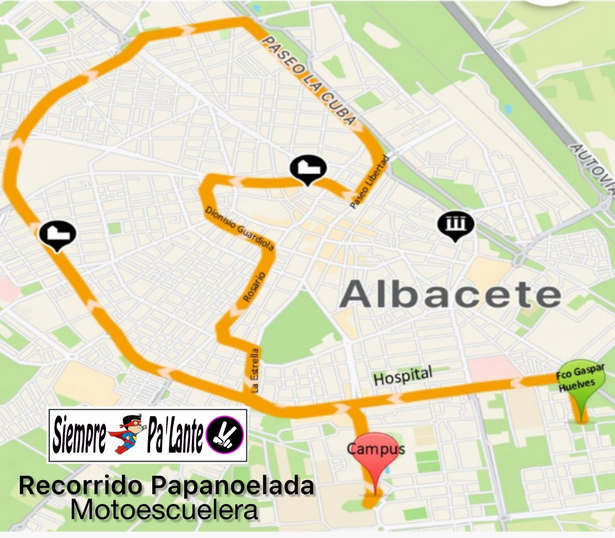 Una vez entregados los sacos de juguetes en la recepción del Hospital, la marea roja comenzará un recorrido alrededor de toda la ciudad. “Salimos desde el hospital, y damos la vuelta a todo Albacete. Salimos por circunvalación hasta el Parque de Bomberos, luego recorremos todo el Parque Lineal y Paseo de la Cuba, y bajamos por el Paseo de la Libertad, Altozano, calle Feria, y al llegar al Molino giramos a Dionisio Guardiola, hasta la calle del Rosario. Después vamos hasta Arquitecto Vandelvira, y allí giramos a la izquierda para coger la calle Estrella, y así llegar de nuevo a circunvalación, Corte Inglés, y terminamos en la zona de bares del Campus Universitario a eso de las 20:00 H de la tarde, donde tomamos algo todos juntos como colofón final a una tarde extraordinaria”, celebra.