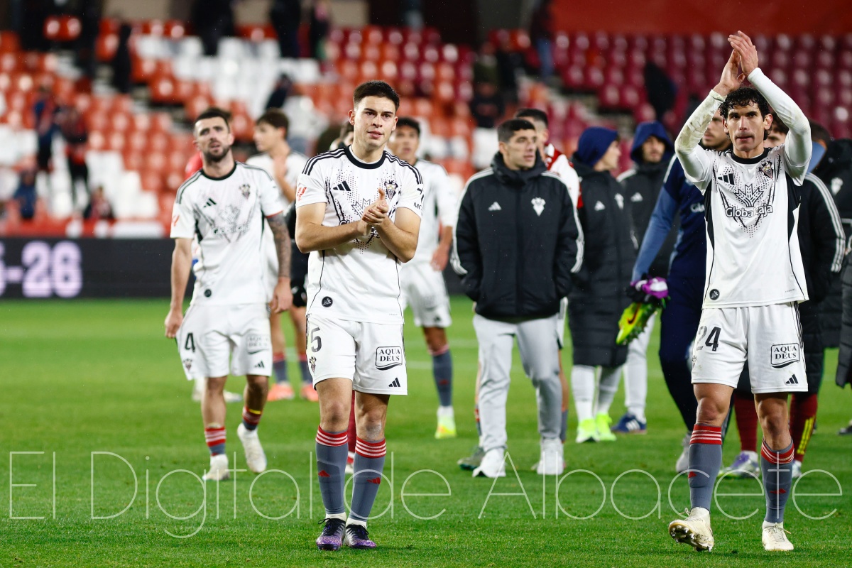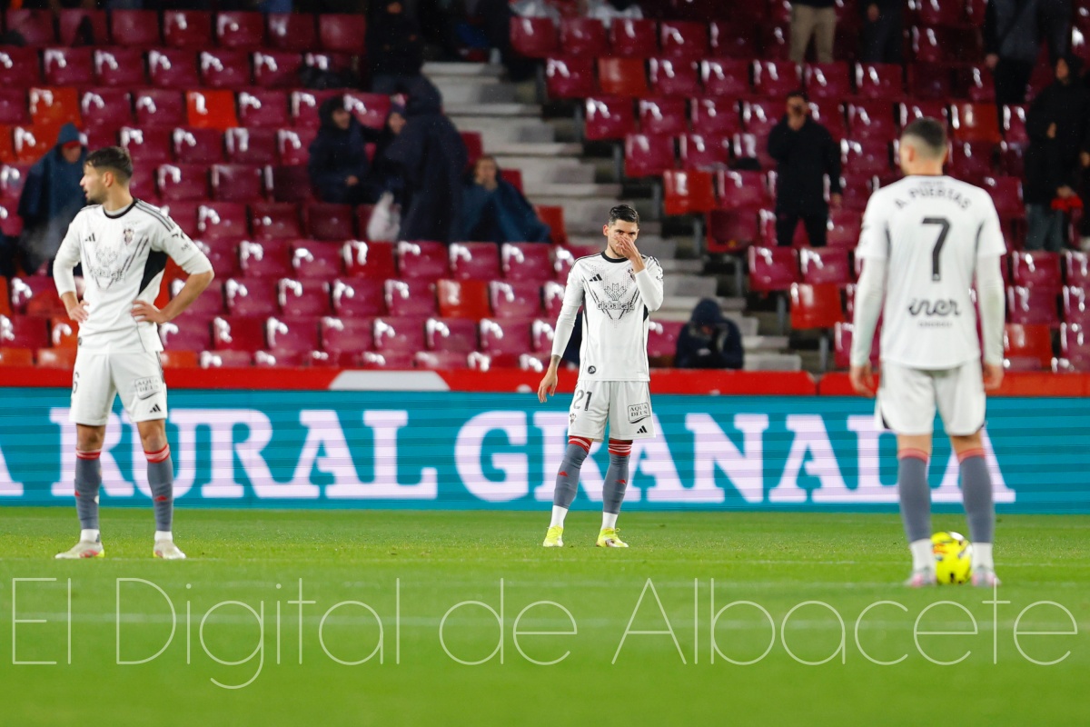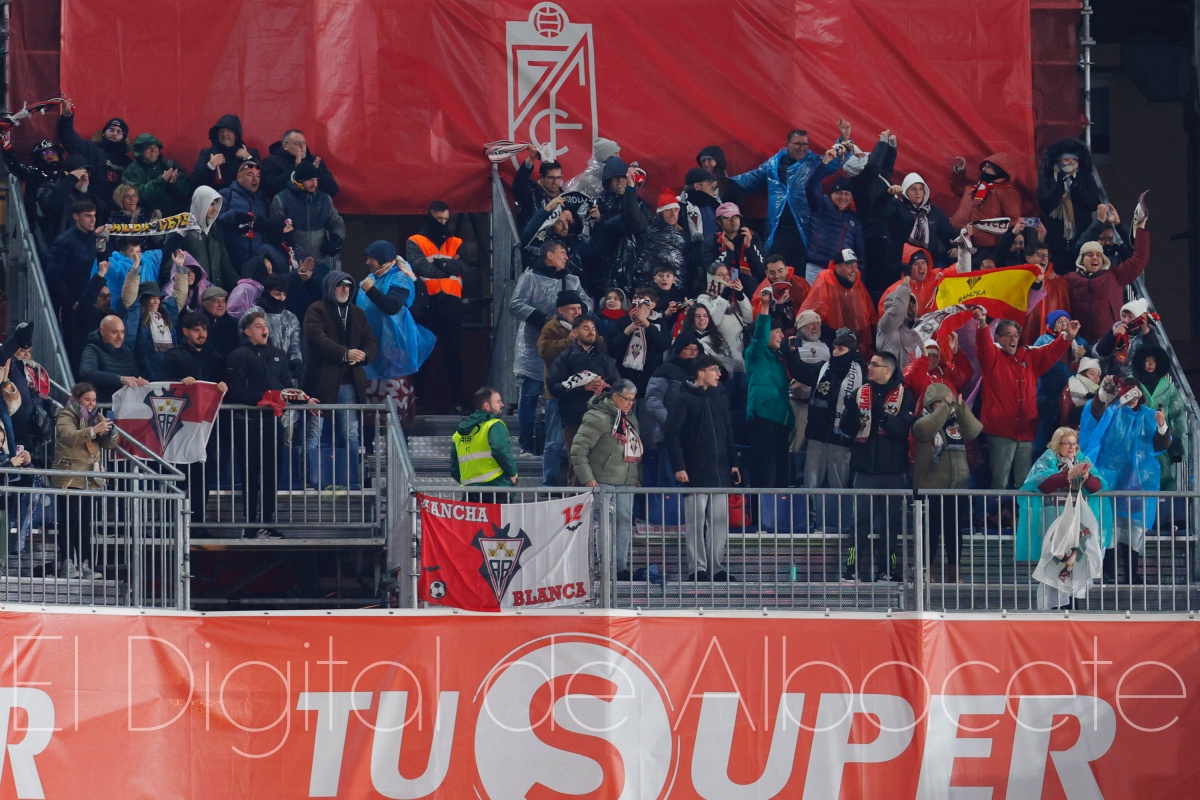 El Albacete Balompié sumaba este domingo un punto en el Estadio Nuevo Los Cármenes de Granada para dar carpetazo al año 2025 en lo estrictamente futbolístico. Tras una primera mitad horrible, en la que el cuadro blanco tuvo un tremendo resacón copero, el partido llegó al descanso con 1-0 a favor del cuadro local, siendo lo corto del resultado lo más destacable para el Albacete de unos vergonzosos primeros 45 minutos. En el descanso, Alberto hizo una revolución total y realizó 4 cambios de una tacada antes de empezar la segunda parte, lo que hizo que el Alba fuera un Alba nuevo y que empatara de manera justa el encuentro y que, incluso, pudiera haberlo remontado y haberse traído la victoria. A tenor de lo visto sobre el verde, el 1-1 es justo ya que hubo una parte para cada equipo y pudieron haber ganado los dos. En la primera parte, el Granada, además de hacer el 1-0, estrelló dos balones en los palos y le anularon un gol por fuera de juego. En la segunda mitad, el Albacete pudo haber hecho algún gol más del que Jefté anotó desde el punto de penalti. Los blancos volvieron a estar arropados de su afición, pese a la lluvia.