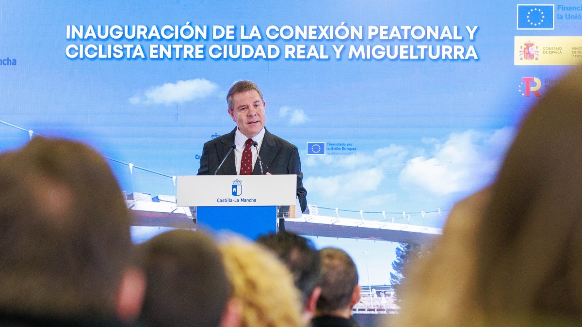 Así lo ha dado a conocer el jefe del Ejecutivo autonómico en la inauguración de la conexión peatonal y ciclista que une Ciudad Real y Miguelturra que, apoyada en fondos europeos, favorecerá la movilidad sostenible de unos 100.000 habitantes de este entorno urbano. Un proyecto que “no es consecuencia de ninguna lotería”, sino que ha supuesto “mucho esfuerzo, mucho desvelo” y “va a tener una enorme utilidad”.