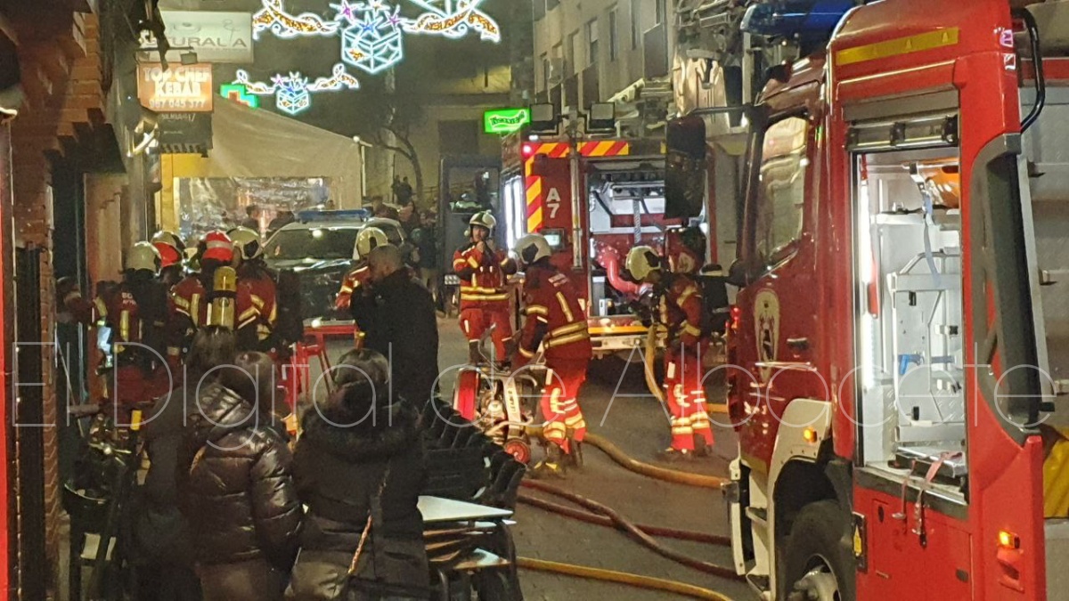 Un importante dispositivo de los Bomberos de Albacete se activaba en la tarde de este viernes, 26 de diciembre, tras recibirse el aviso de un incendio en un establecimiento hostelero situado en pleno centro de la capital.