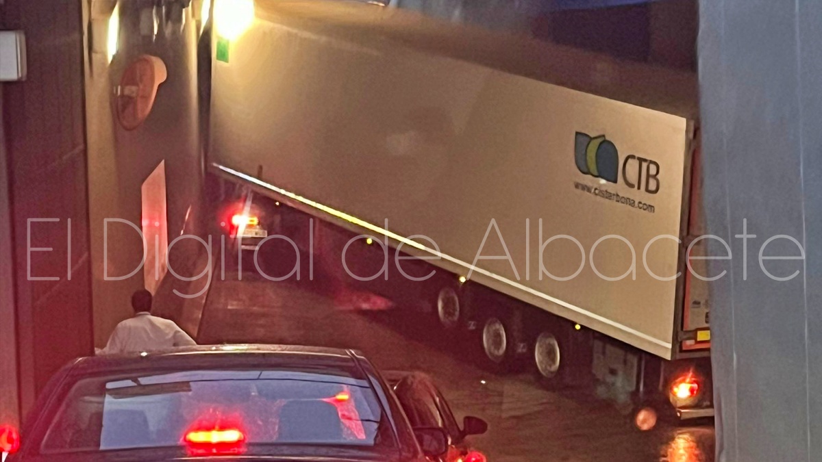 Un importante atasco de tráfico se ha producido este domingo en la entrada de El Corte Inglés de la Avenida de España, en Albacete, después de que un tráiler de grandes dimensiones quedara atrapado en la rampa de acceso desde la circunvalación.
