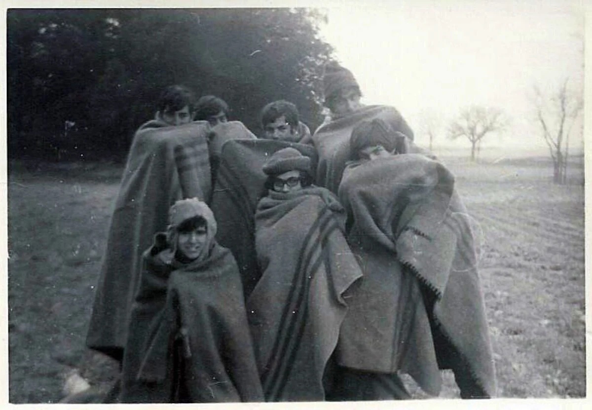 “Aquella mañana, después de la noche de los veinticuatro bajo cero —nos enteramos al regresar a Albacete—, nos hicimos una foto”, relata uno de ellos. Tenían 15 y 16 años y pasaban las vacaciones de Navidad acampados en el paraje de La Mejorada (Alpera). Dormían en una tienda de lona para ocho personas; otra, de plástico fino, servía de apoyo. “Al apoyarnos accidentalmente, se rompió como si fuera hielo y quedó el agujero con la forma de una mano”, recuerda. Una imagen tan frágil como poética del frío más severo.