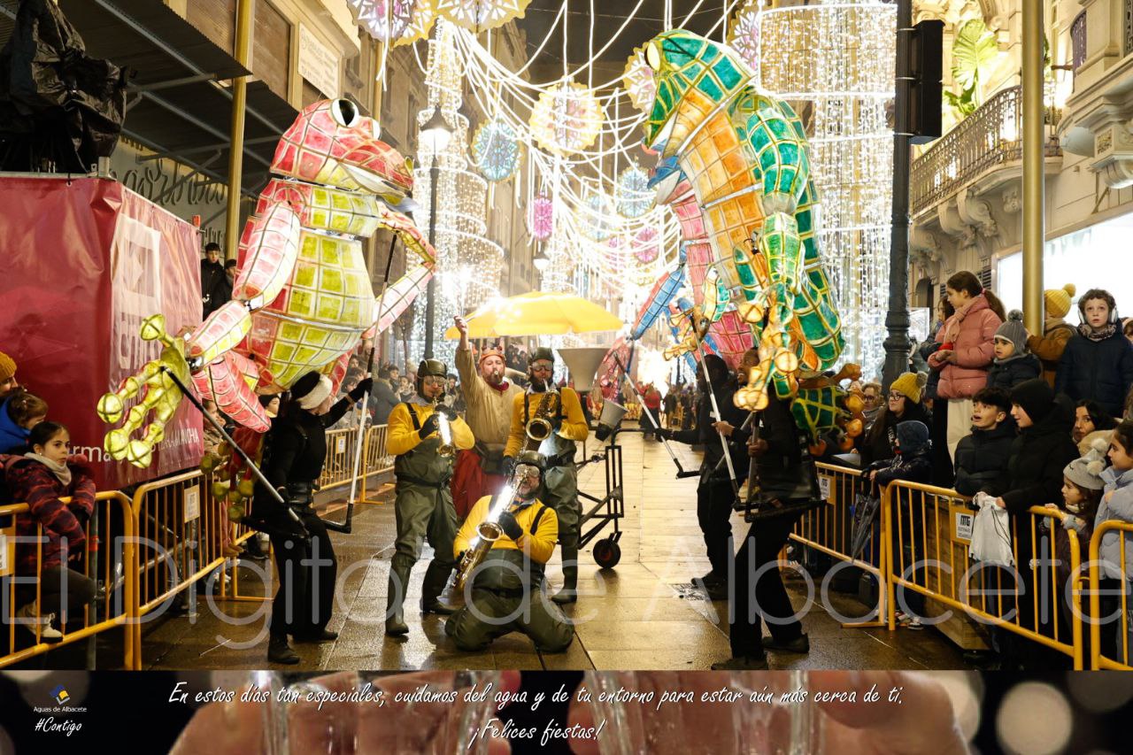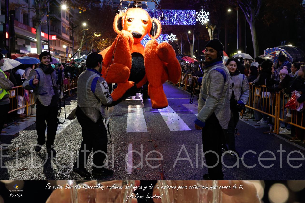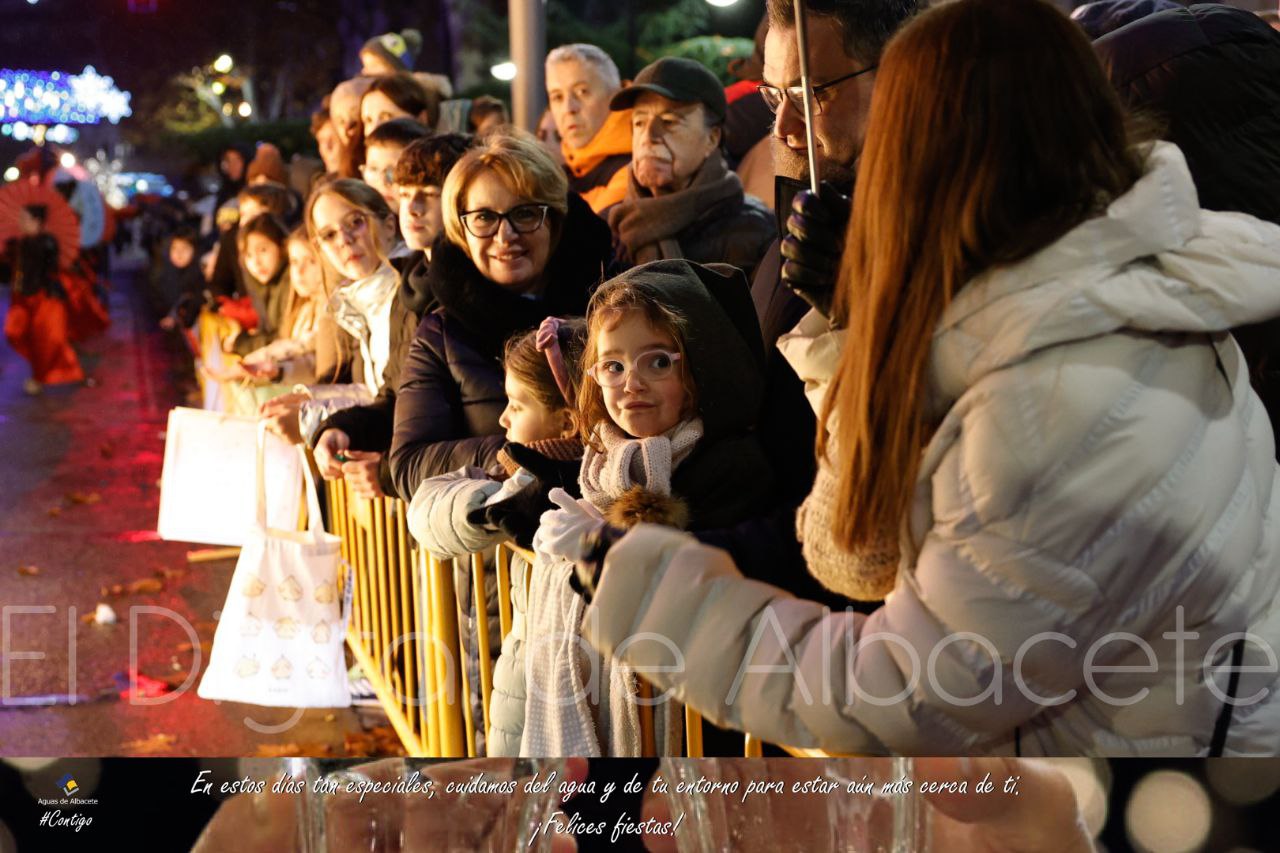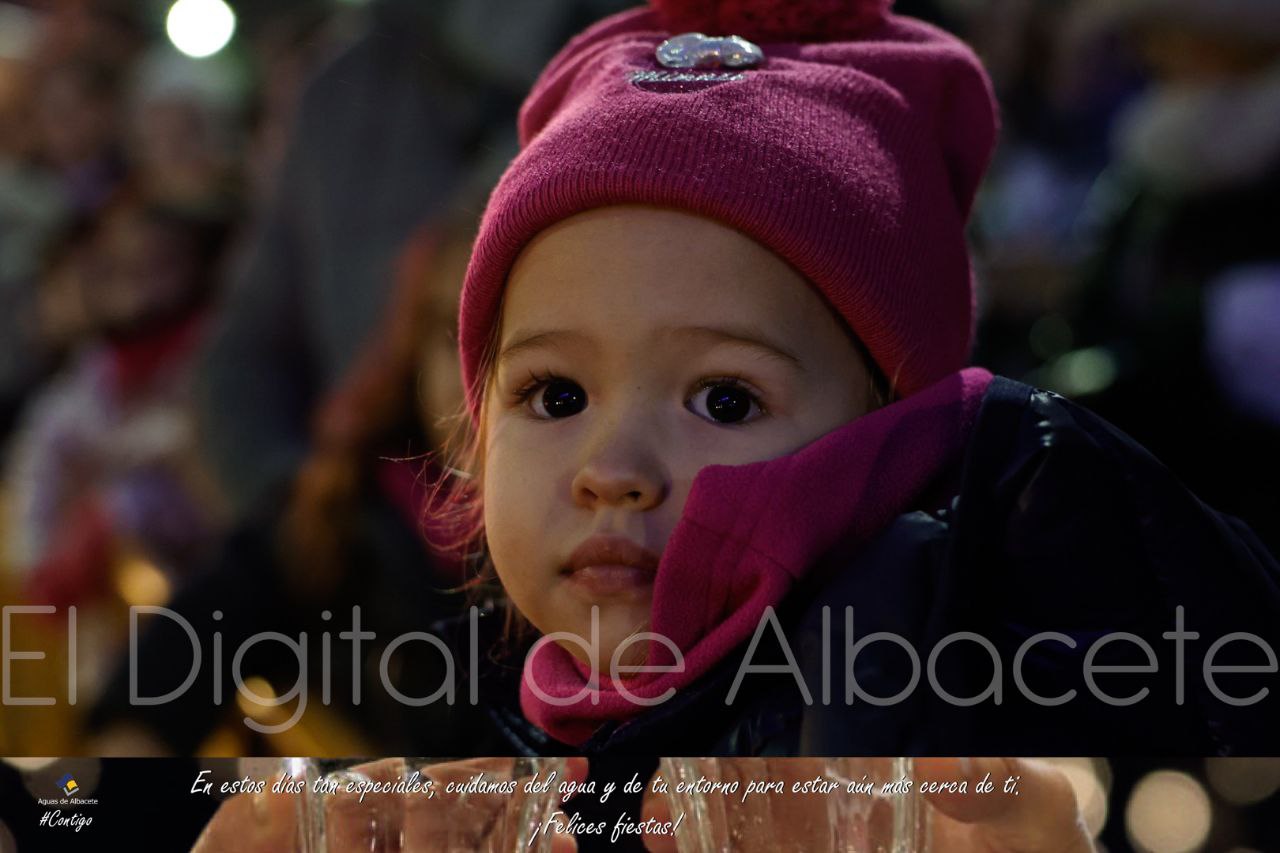 La previsiones de mal tiempo no han dado al traste con la Cabalgata de Reyes Magos en Albacete capital, que aunque ha tenido que acortar su recorrido y comenzar en la Plaza de Benjamín Palencia y no en el Asilo, ha inundado de magia e ilusión las calles de Albacete.
