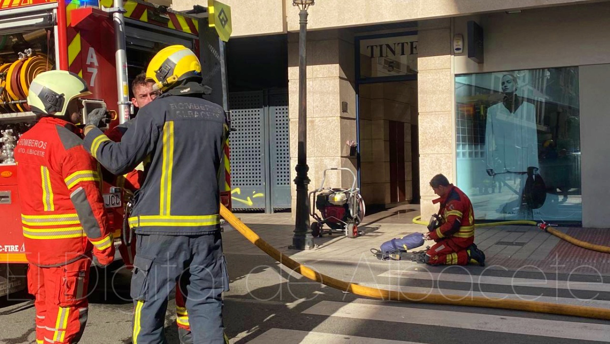 El centro de Albacete ha sido el escenario este jueves de un importante despliegue de los servicios de emergencia tras una llamada de alerta al 112, en la que se indicaba que desde el tercer piso del número 5 de la calle Tinte estaba saliendo humo.