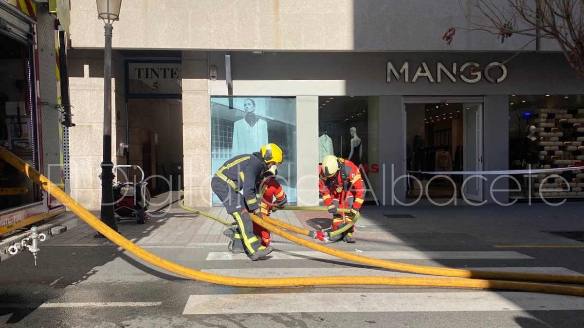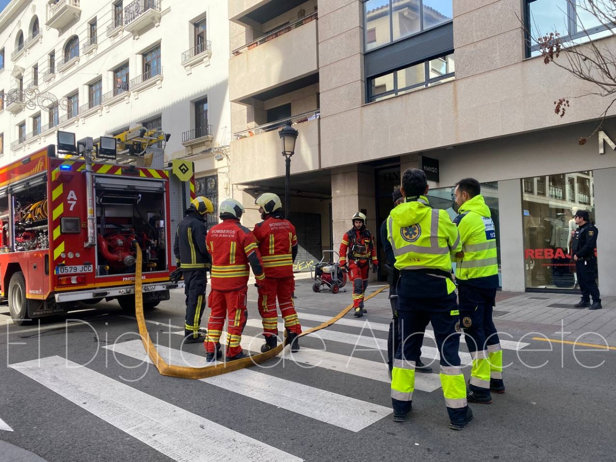 Todo se ha debido a una llamada al 112 alertando de un posible incendio en vivienda, concretamente en un piso ubicado en el número 5 de la calle Tinte, en pleno centro de la ciudad de Albacete y en el portal de al lado que hay justo al lado de la tienda de MANGO. La salida de humo por los ventanales era evidente desde la calle.