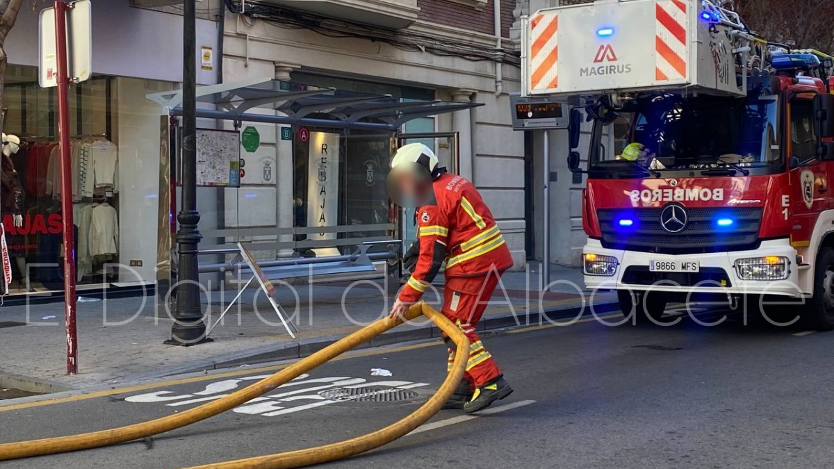 A las 13.45 horas, la tranquilidad reinante en el corazón de Albacete se veía quebrantada por la irrupción de las sirenas de los Bomberos, la Policía Local de Albacete y varias ambulancias.