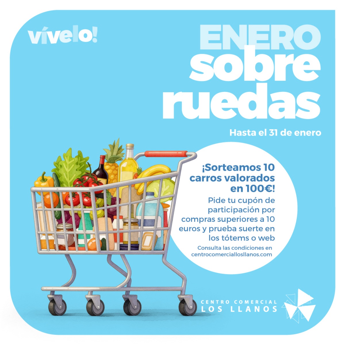 El centro comercial Los Llanos arranca el año con una nueva campaña promocional pensada para incentivar las compras y premiar la fidelidad de sus clientes. Bajo el lema ‘Enero sobre ruedas’, el espacio comercial albaceteño sortea diez carros de la compra valorados en 100 euros cada uno, una iniciativa activa hasta el próximo 31 de enero.