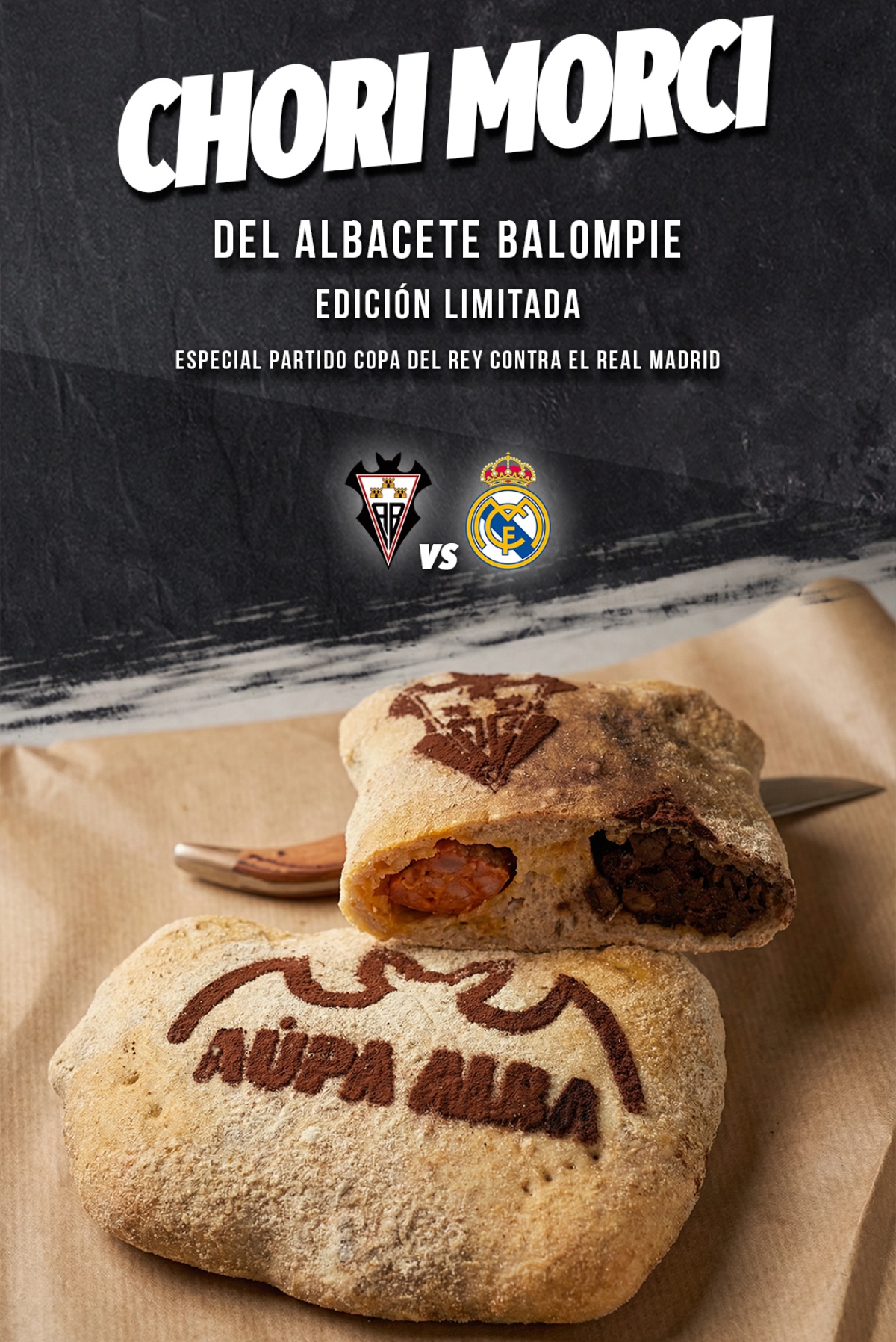 La panadería artesanal Vamos de Pan ha presentado el “Chori Morci del Albacete Balompié”, una edición limitada creada con motivo del partido de Copa del Rey que enfrentará al conjunto albaceteño con el Real Madrid.