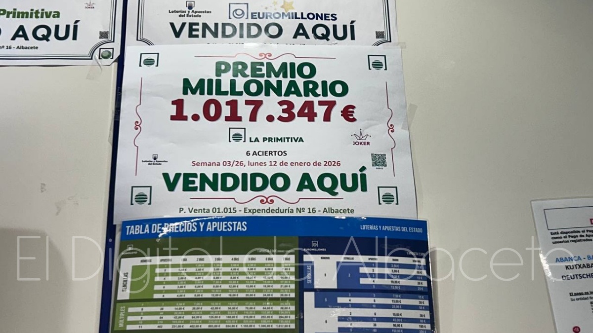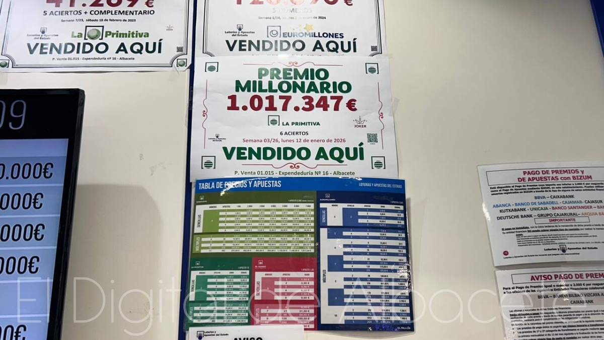 La fortuna volvía a sonreír este lunes a la ciudad de Albacete, y es que la Lotería Primitiva dejaba un millonario premio en la capital albaceteña. En concreto, el sorteo de este 12 de enero dejaba un único acertante de Primera Categoría que se alzaba con un premio de más de un millón de euros.