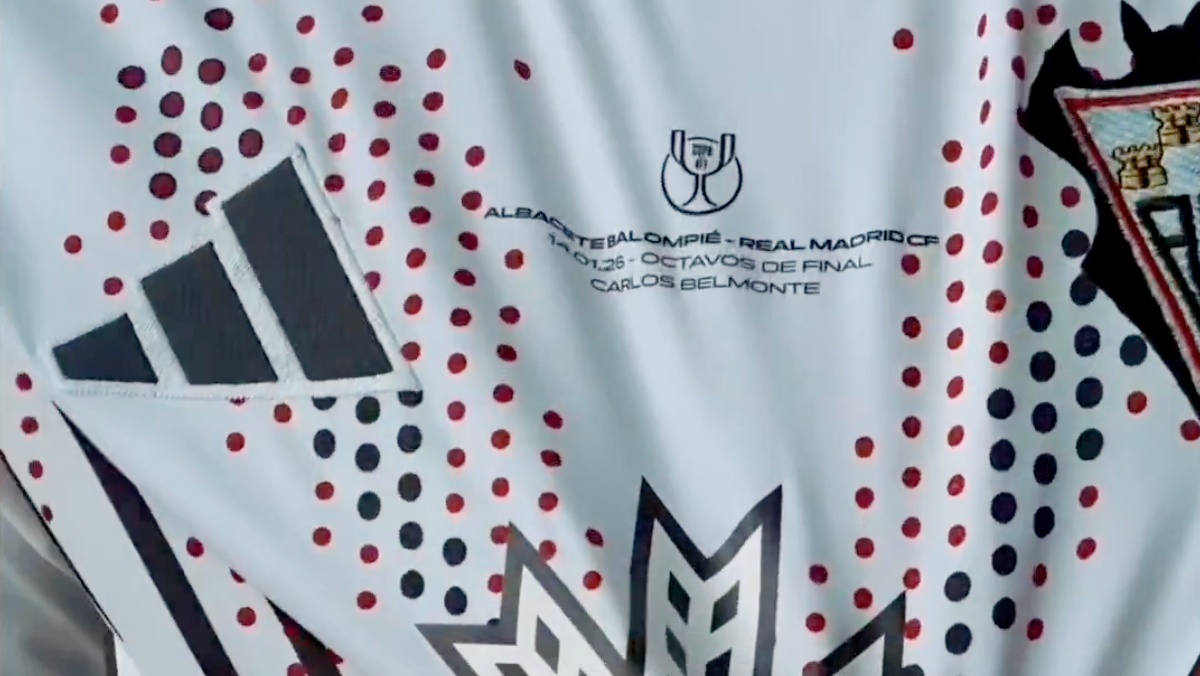 La prenda, confeccionada por Adidas, incorporará entre el logo de la marca y el escudo del Albacete Balompié la siguiente leyenda: “Albacete Balompié – Real Madrid; 14-01-2026; Octavos de Final; Carlos Belmonte”. Sobre ese texto, además, irá serigrafiado el logo de la Copa del Rey, reforzando la condición de partido señalado en rojo en el calendario y elevando la camiseta al rango de pieza conmemorativa.
