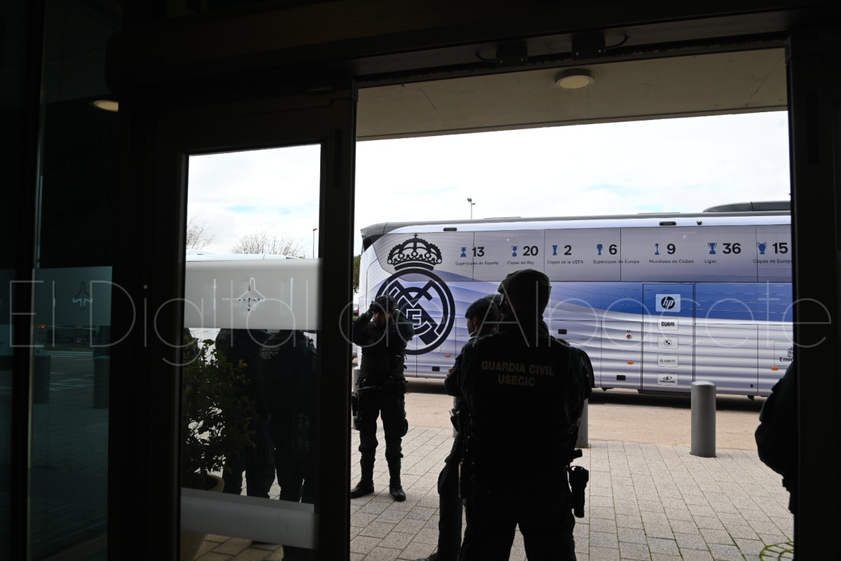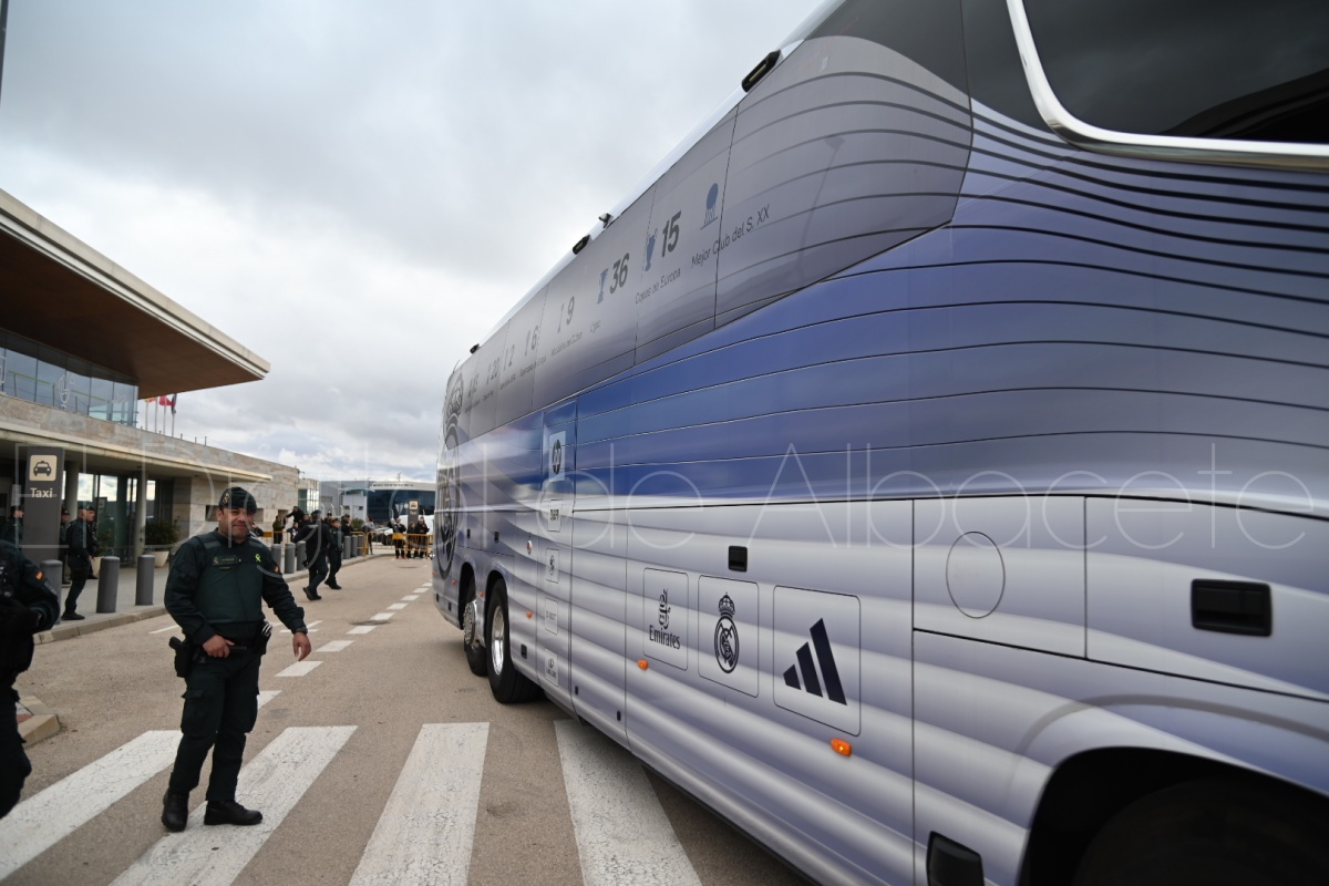 La expedición del Real Madrid ya está en tierras manchegas. El equipo dirigido por Álvaro Arbeloa ha llegado este mediodía al Aeropuerto de Albacete, una instalación civil integrada en la red de Aena y situada en la zona de Los Llanos, al sur de la capital.